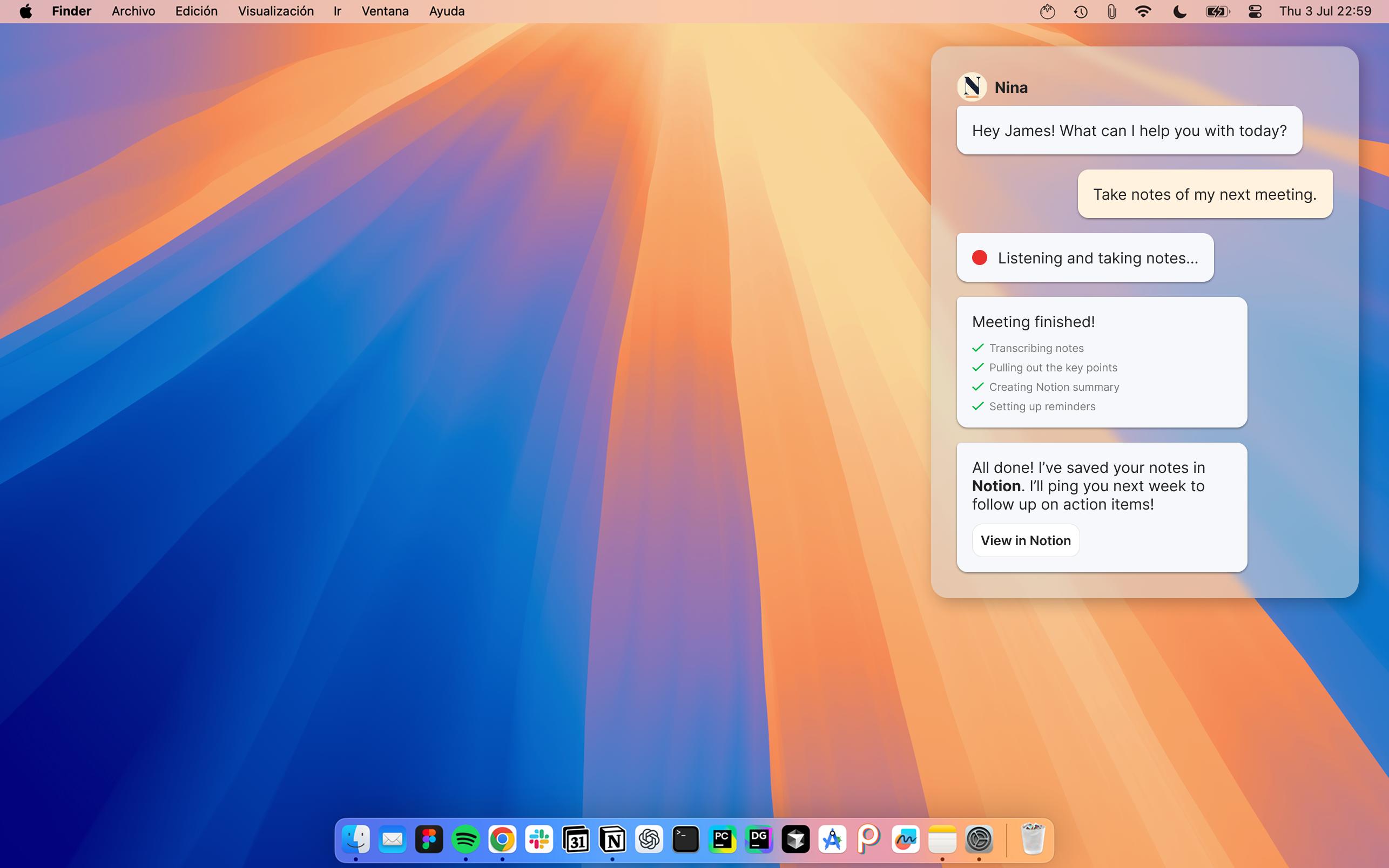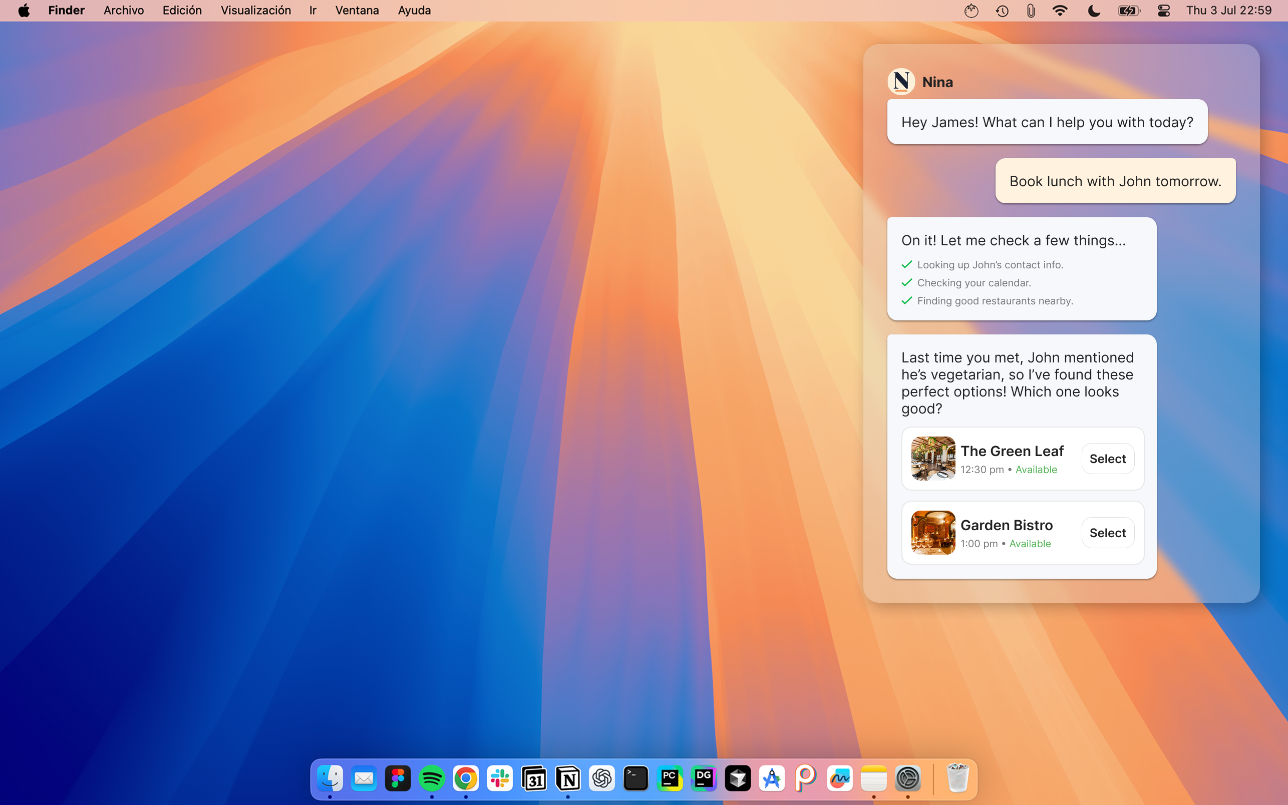 Nina is a personal AI assistant that remembers what matters, integrates with any tool, and handles the boring stuff so you can focus on what matters. Schedule meetings, book restaurants, send reminders, and more, all from one intelligent, contextual hub.