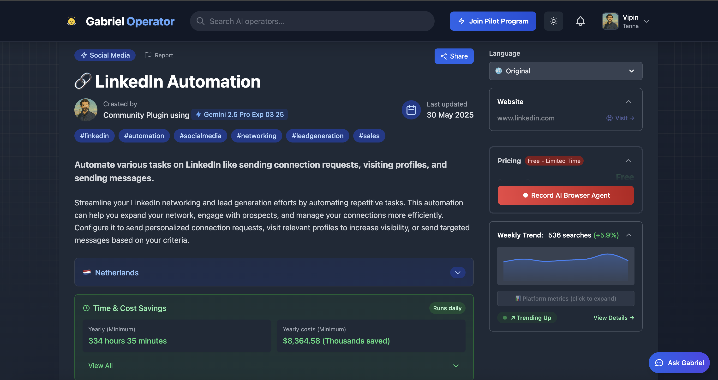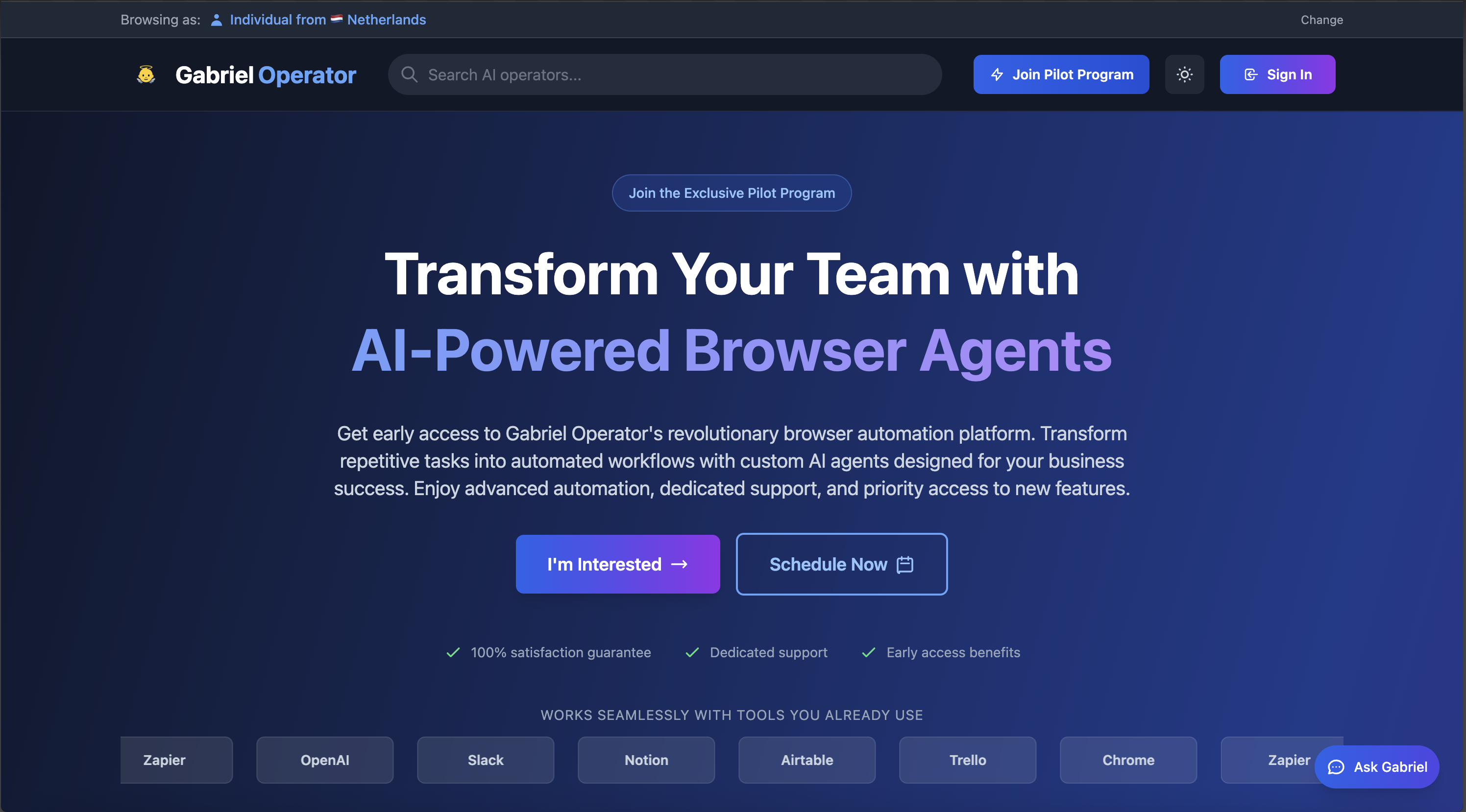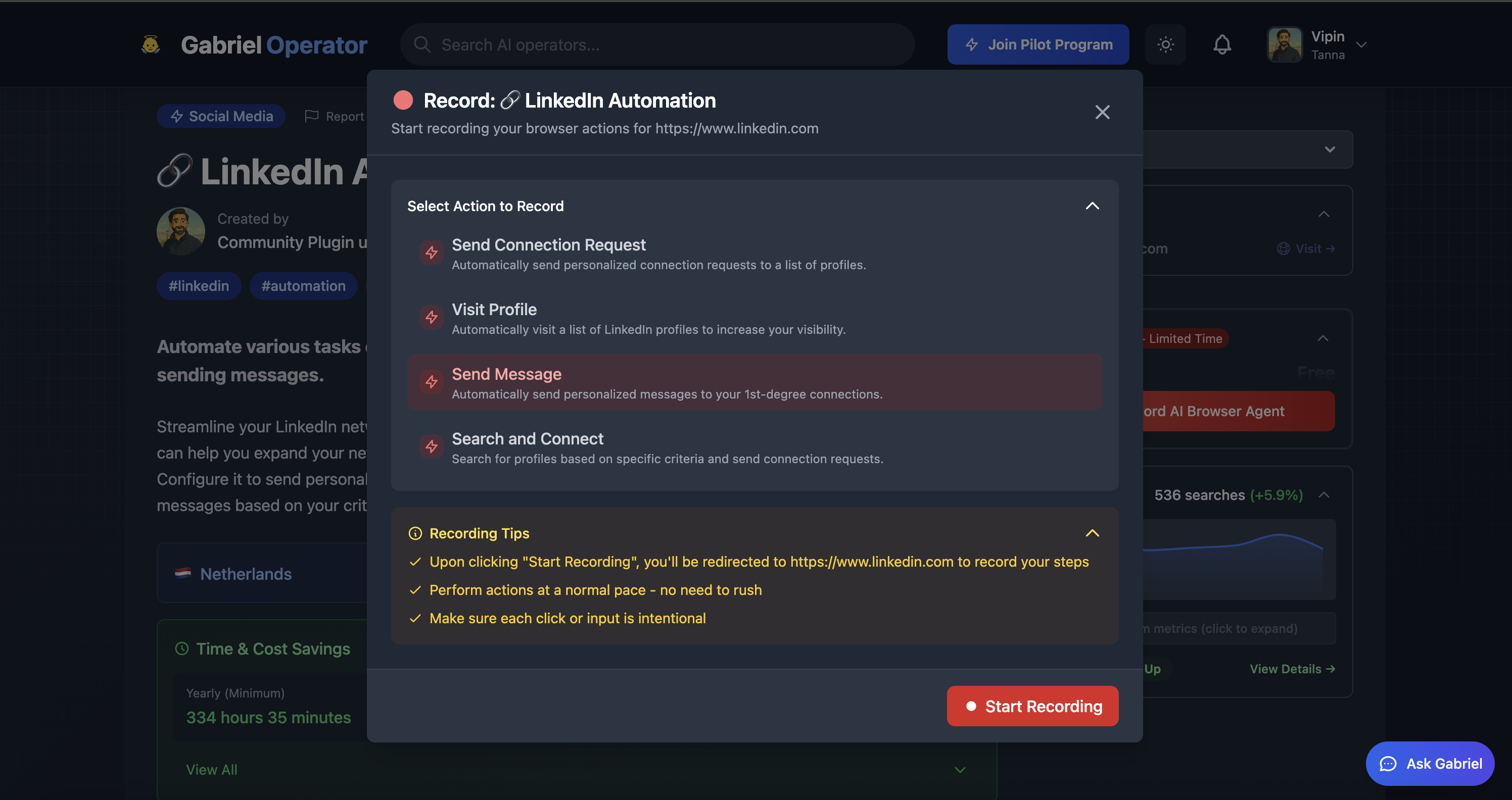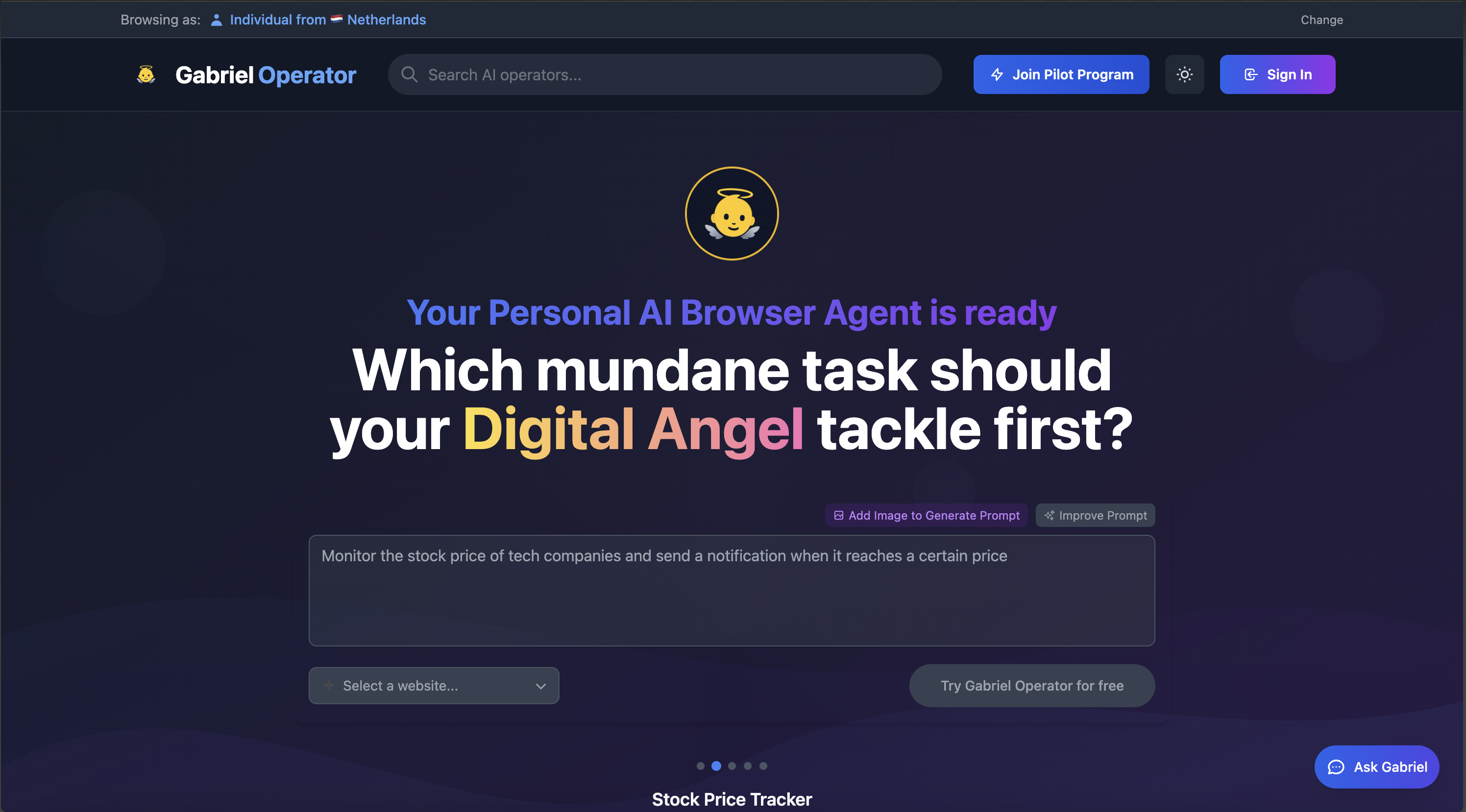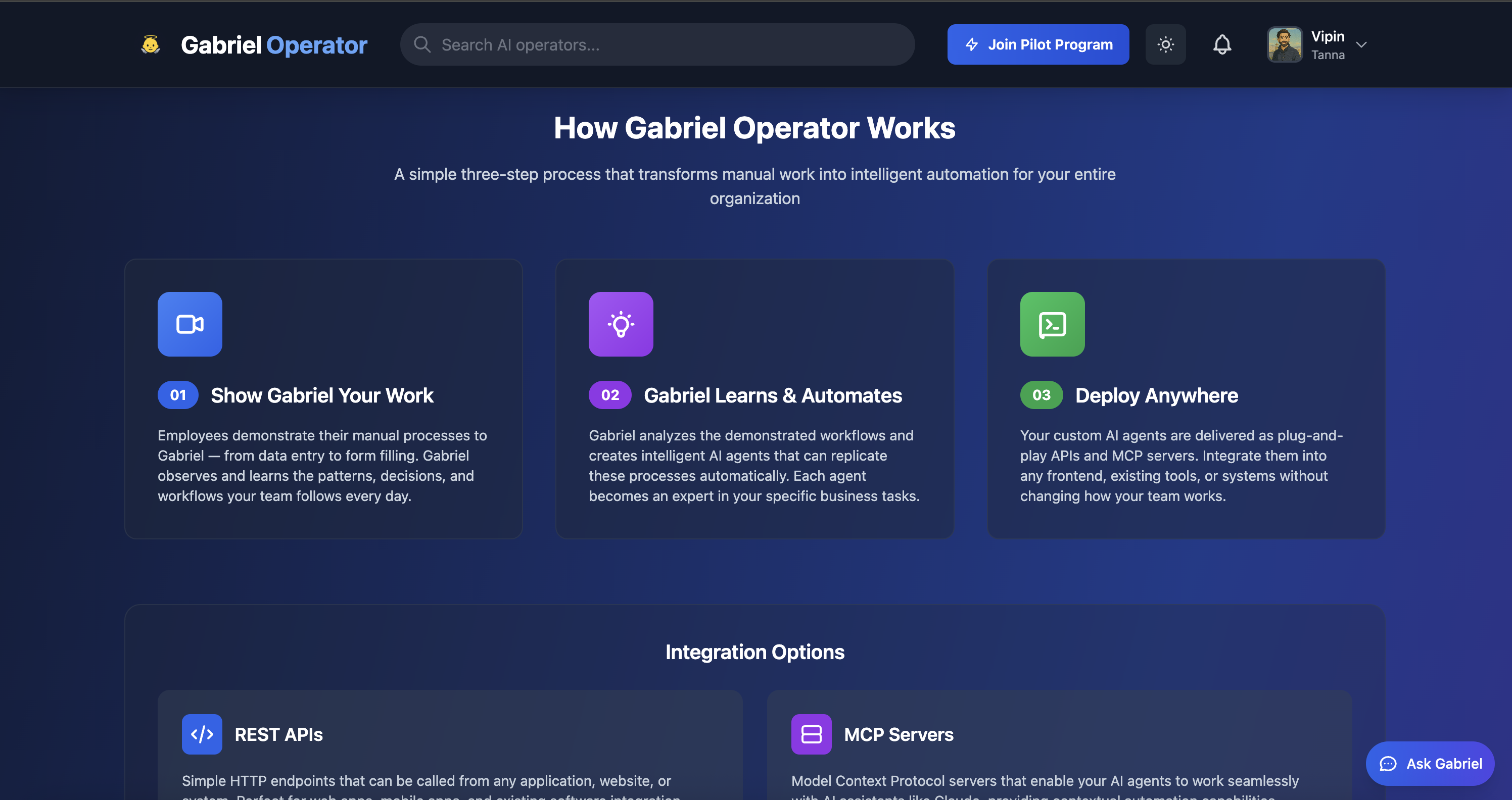 Meet Gabriel Operator – your Digital Angel that turns browser actions into AI agents. No code, no APIs. Just record, customize, and let your agent automate web tasks like filling forms, scraping data, logging in & more. A new era of personal automation.