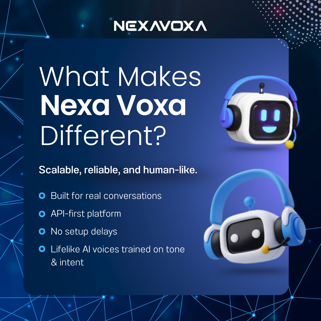 使用NexaVoxa智能AI语音助手实现商务通话自动化。全天候以任何语言处理客户支持、筛选潜在客户并进行自然对话。