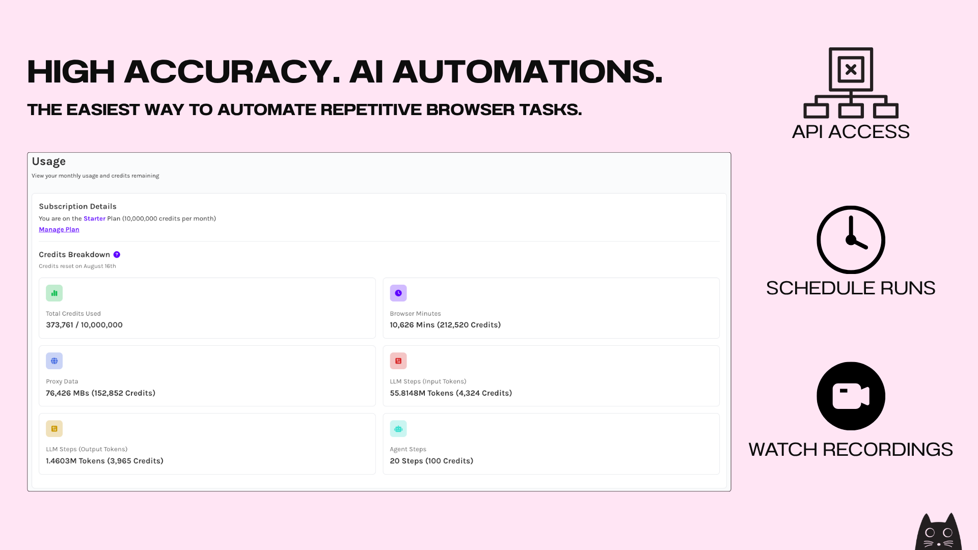 CopyCat是一个无需编写代码即可构建浏览器自动化流程的平台。通过CopyCat编辑器,您可以将AI智能提示与可靠的分步操作相结合,实现任何网页任务的自动化。
