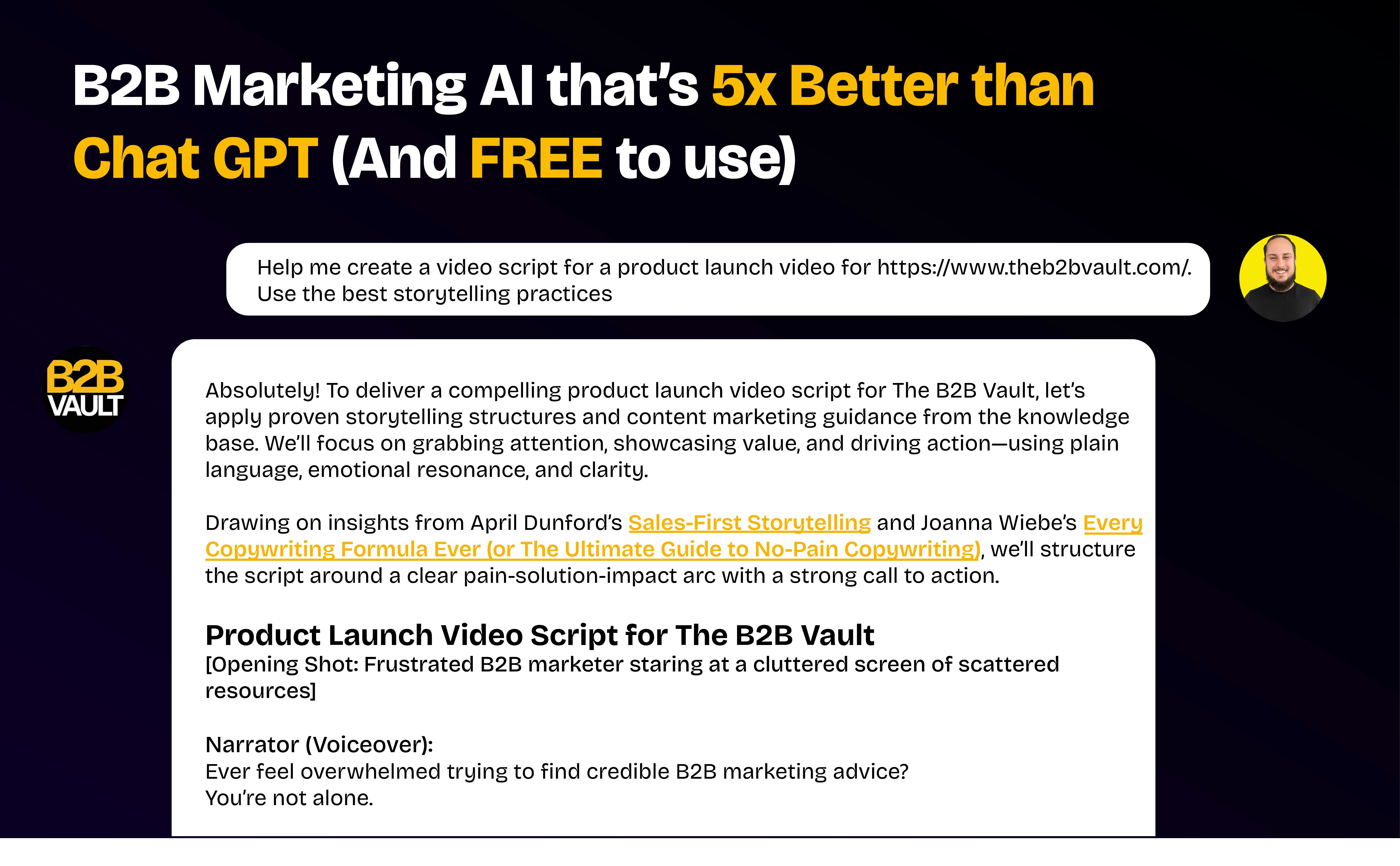 Sick of AI-generated content and bad advice on LinkedIn and Google? B2B Vault filters the noise. Get real insights from top B2B minds & use AI marketing assistant trained on their secret knowledge. It’s like hiring 100 B2B experts to work for you. But free.