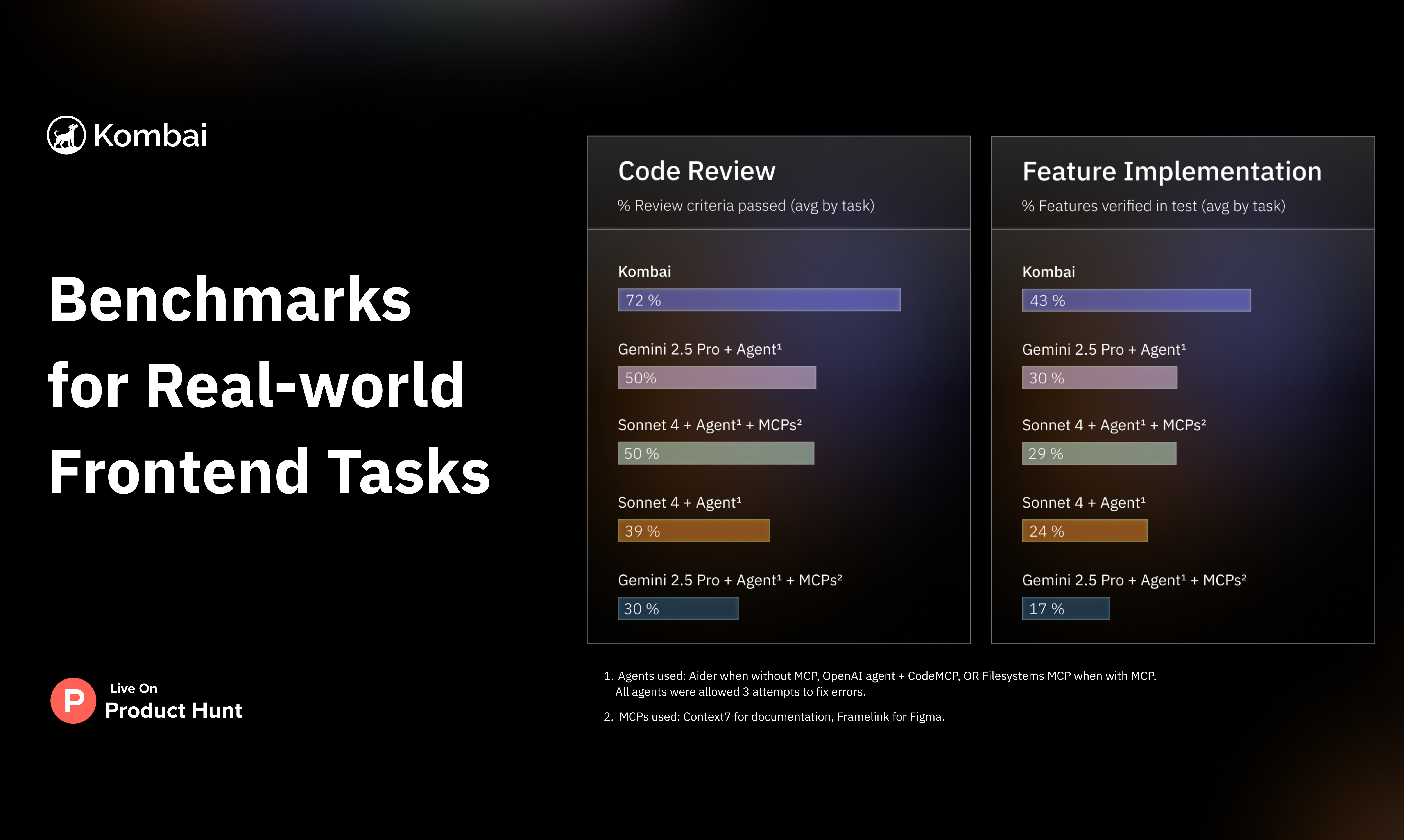 The first domain-specific AI for Frontend tasks beyond prototypes. Build entire app UIs, refactor code, or create components from Figma, text, image or code. Understands your codebase. Works in your IDE. Vastly outperforms generic agents + frontier models.