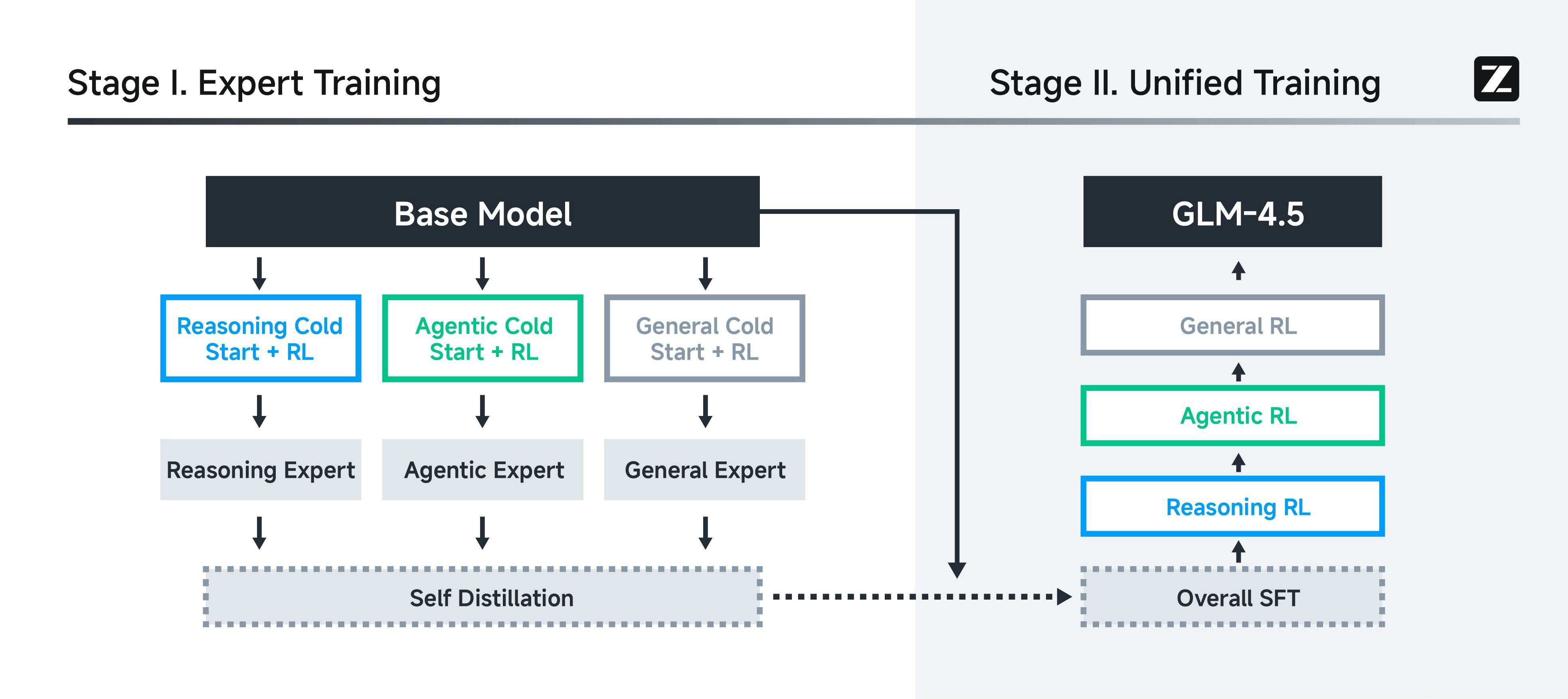 GLM-4.5 is a new 355B parameter open-weight MoE model (32B active). It delivers state-of-the-art performance on reasoning, code, and agentic tasks. Both the 355B flagship and a 106B Air version are now available, featuring dual-mode inference.