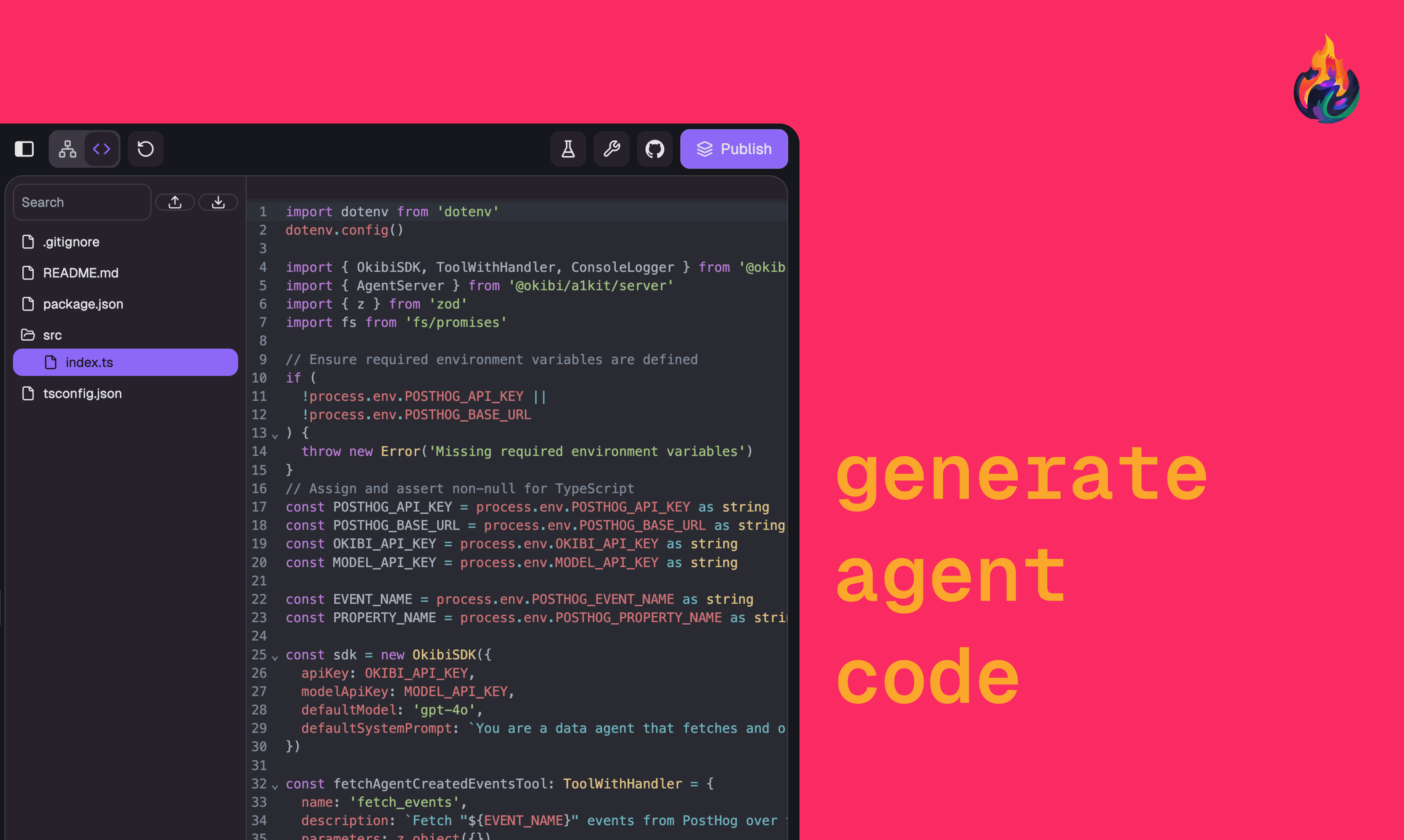 A web app to build AI agents using simple prompts, You can think of it as Lovable but for Agents! Build automations and agents with no effort: 🧑💻 generate agent code 🔄 see agent's flow 🌐 one click to publish your agent 🎨 templates to get started easily