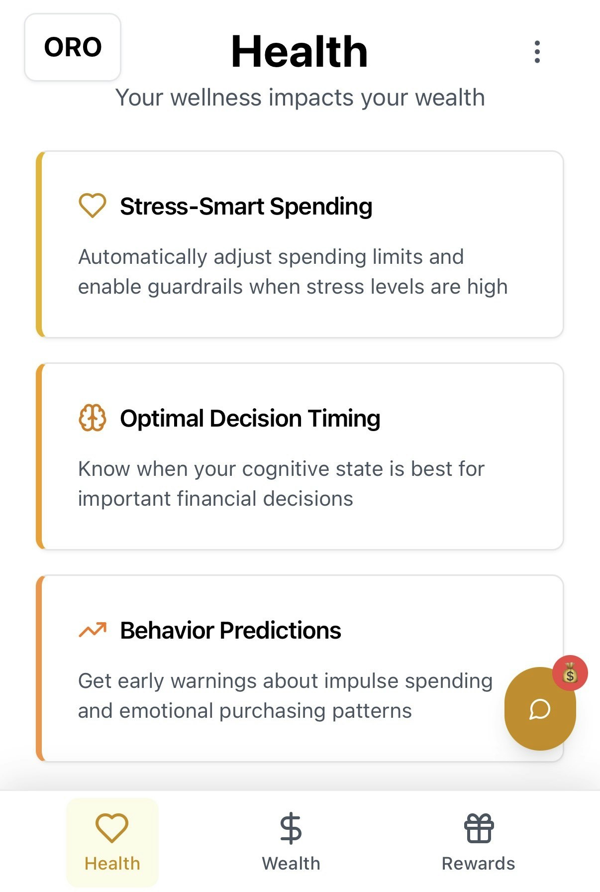 Like having a money therapist in your pocket 💛First AI that reacts to your stress, sleep, spending and overall daily behaviors to help you stop overspending and make better decisions. Powered by biometrics, behavioral science, and love.