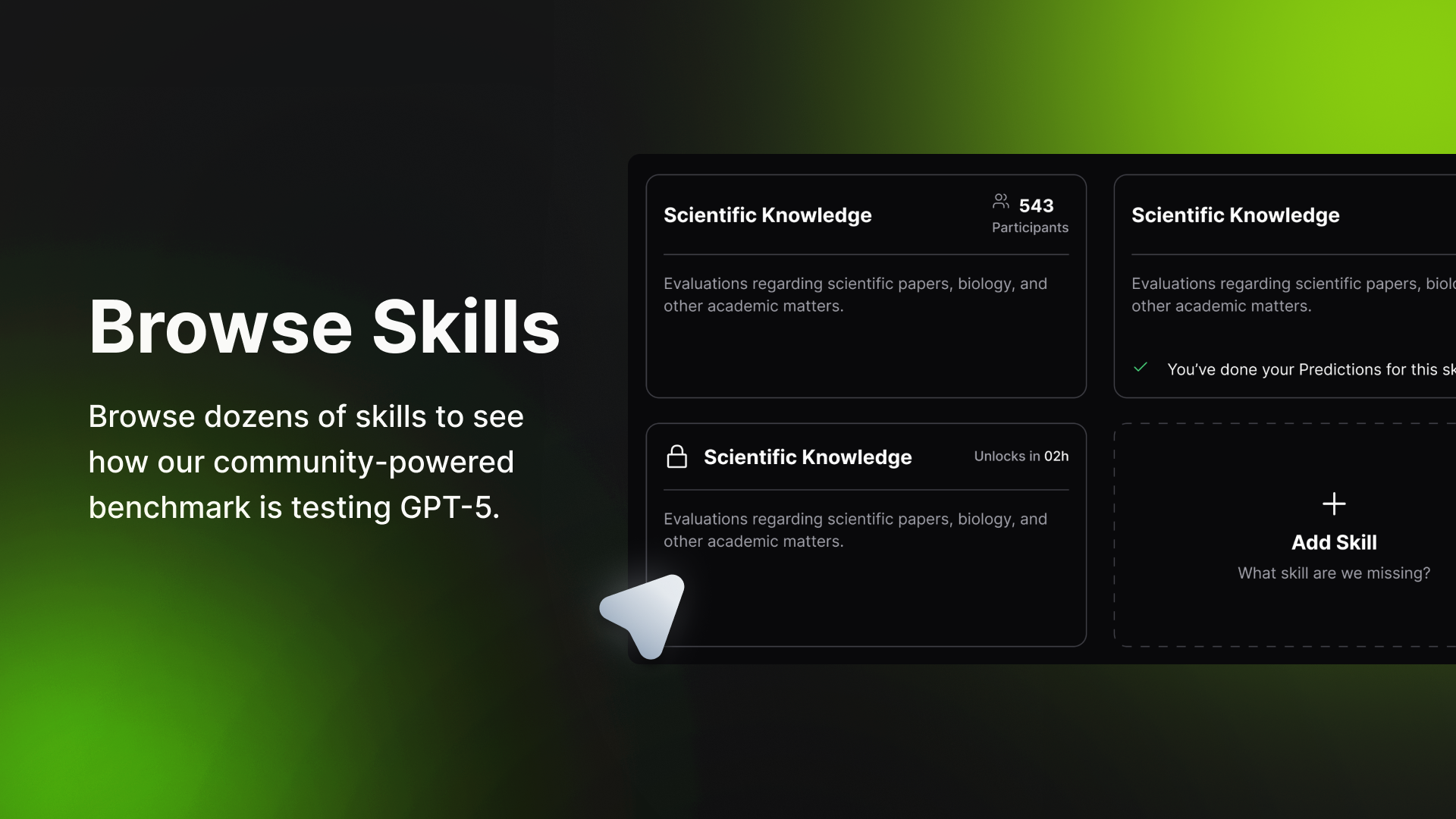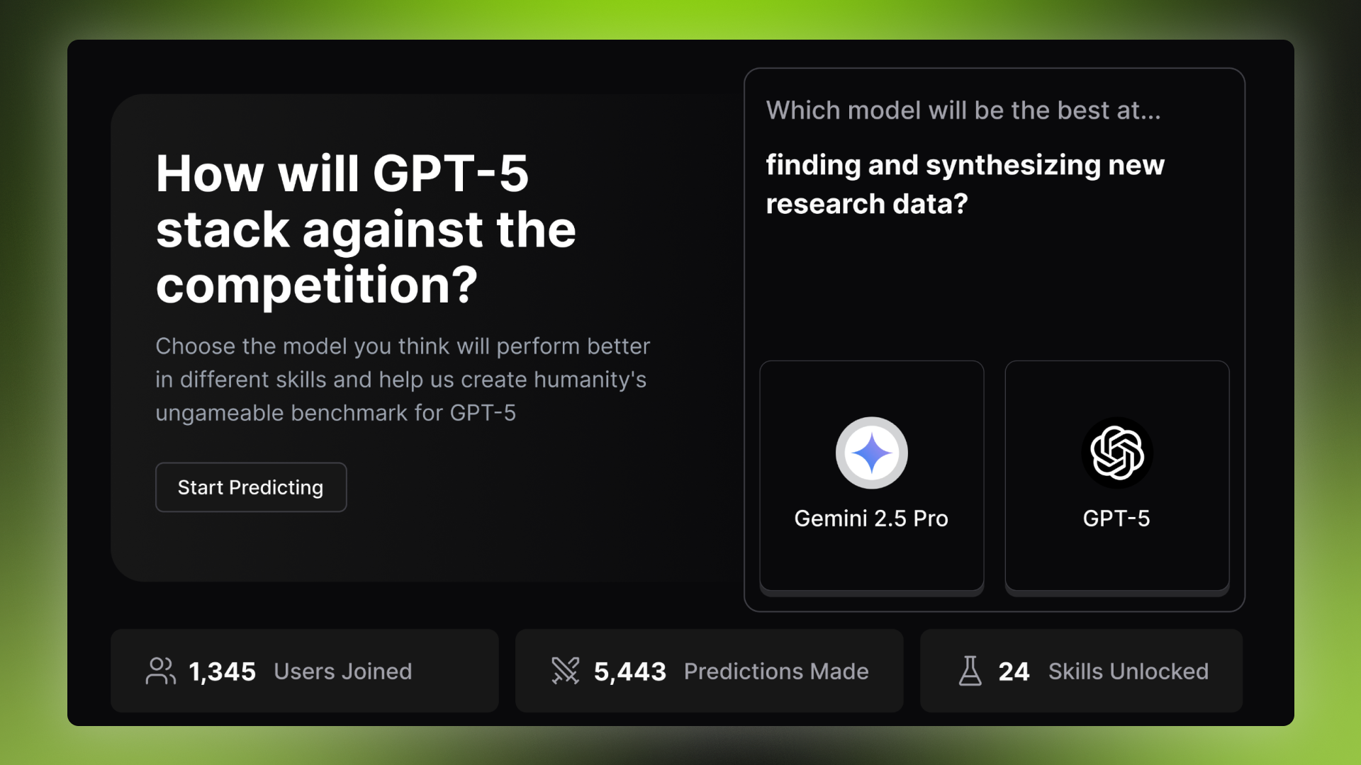 Predict, by Recall, is the world’s first ungameable, community-led benchmark for frontier models. Join thousands of AI researchers, developers, and enthusiasts in evaluating and building a benchmark for OpenAI’s upcoming GPT-5 model.