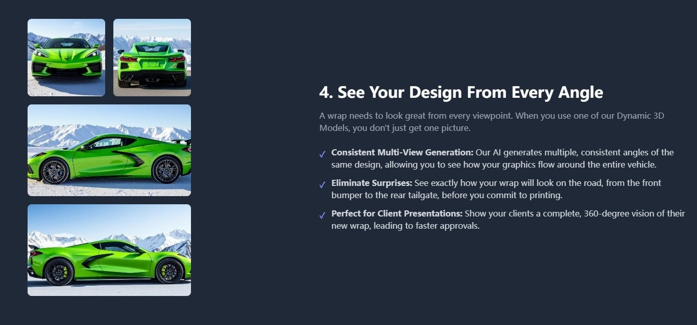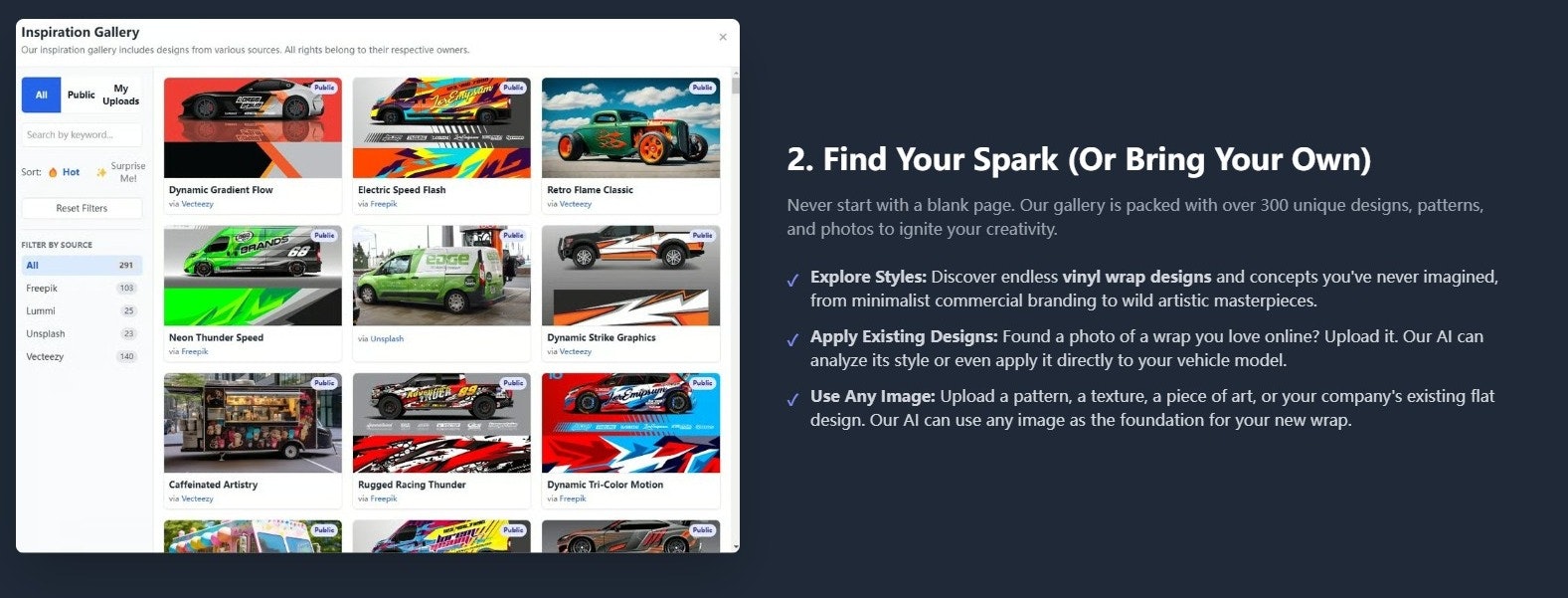 Get unlimited, professional custom vehicle wraps in minutes with WrapStudio AI. Our AI generates high-quality 3D mockups & 2D layouts. Refine any design to perfection and start with massive libraries of 150+ vehicles and 300+ inspirations.