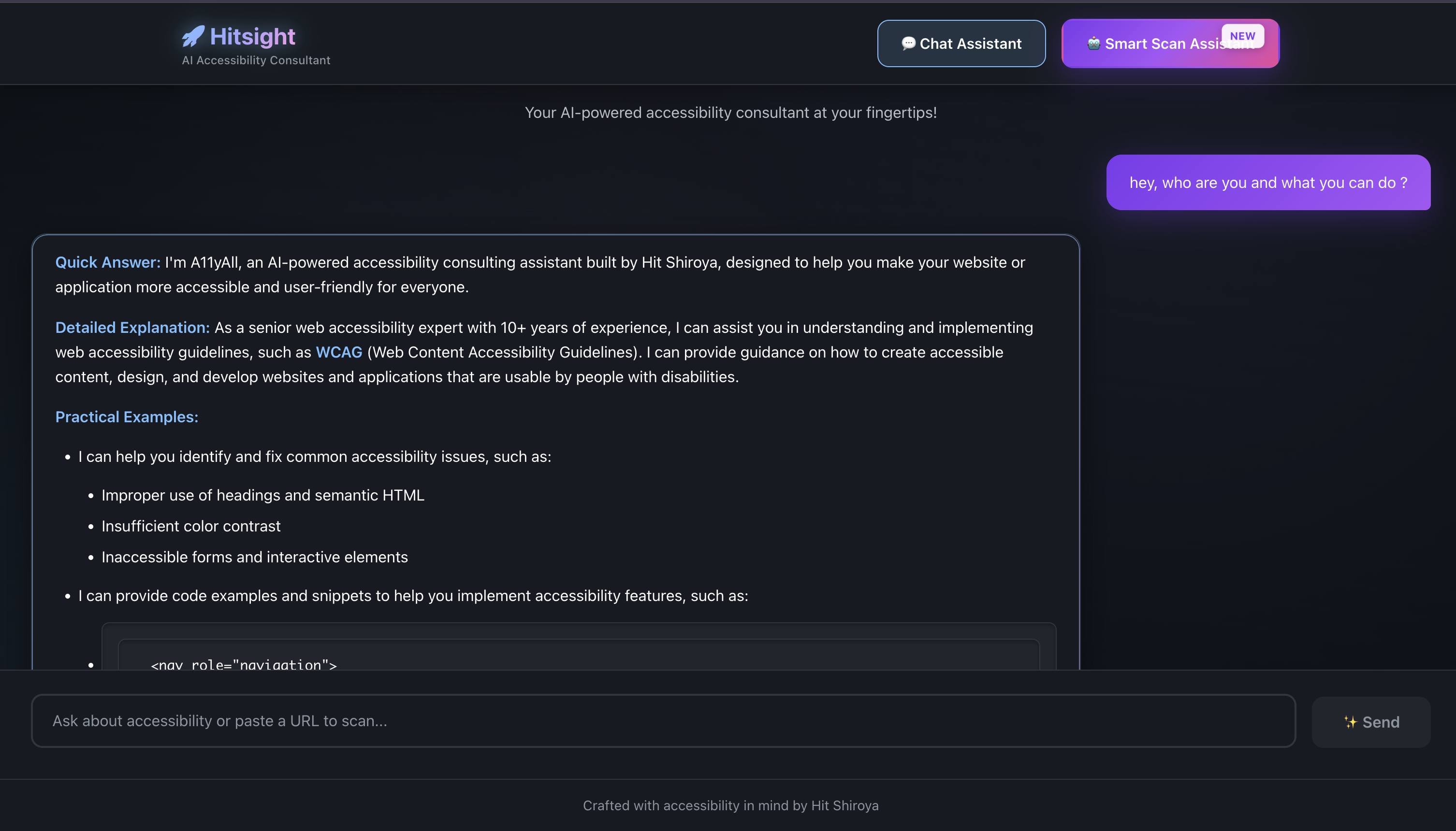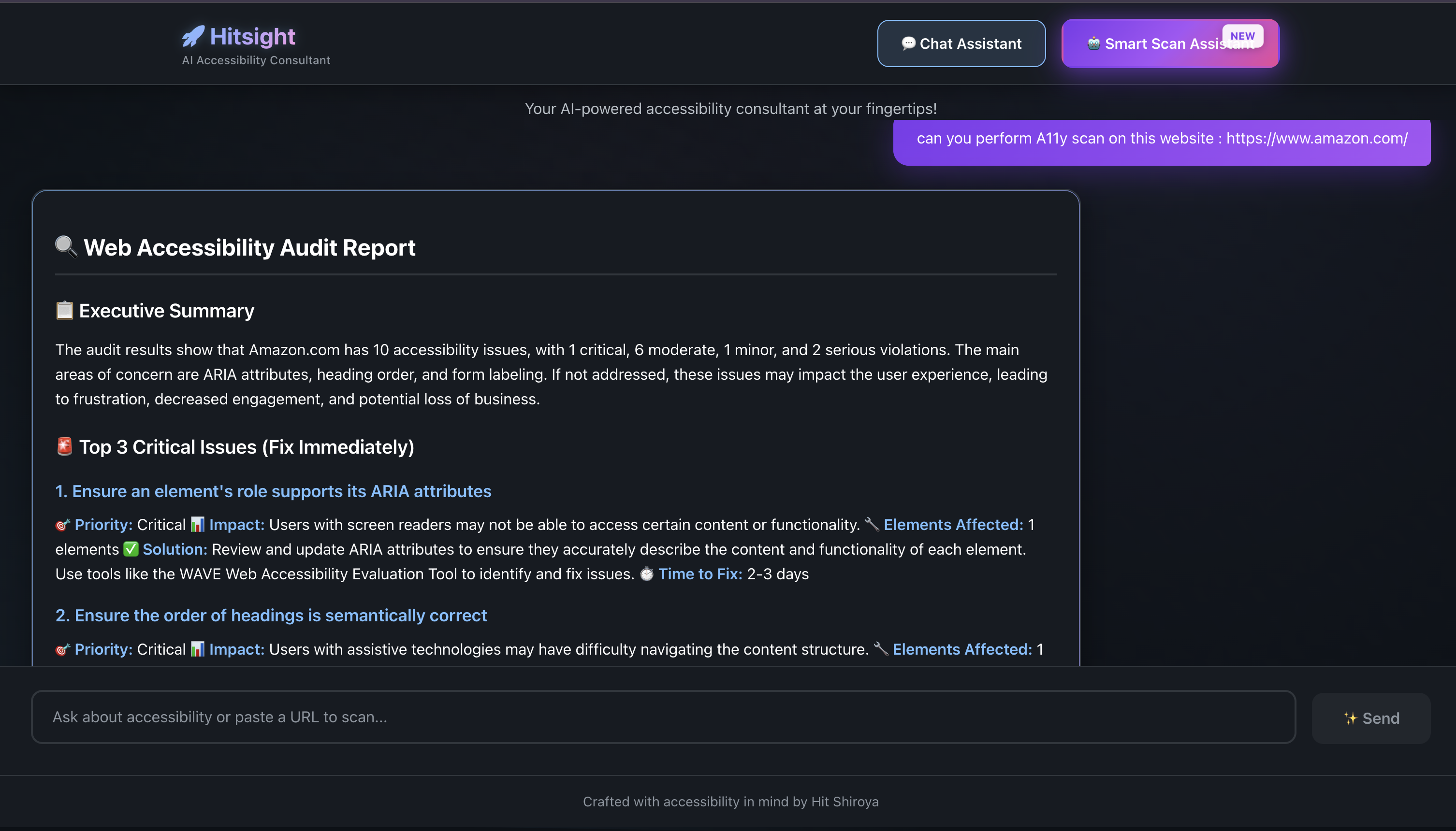 For big tech, complex audits are history. Hitsight's AI Agent + chat delivers deep web insights instantly, via one prompt. Eliminate setup hassles. Start with A11y, including live scanning. Your essential, professional audit solution for streamlined success.