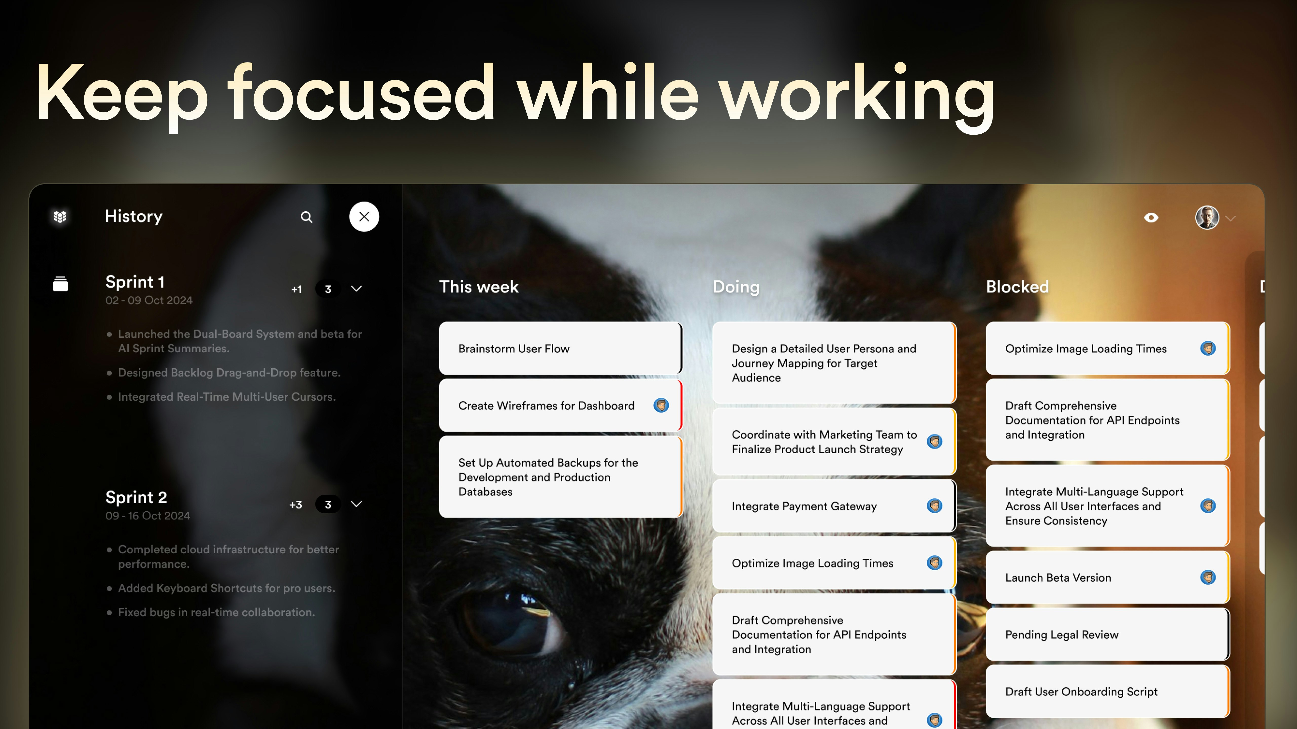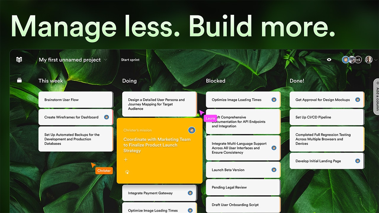 A fast, minimal project management tool for devs, designers and small teams. Built-in AI helps break down tasks, summarise sprints and organise your backlog – no clutter, no plugins, no fluff. Just clean, focused planning that works.