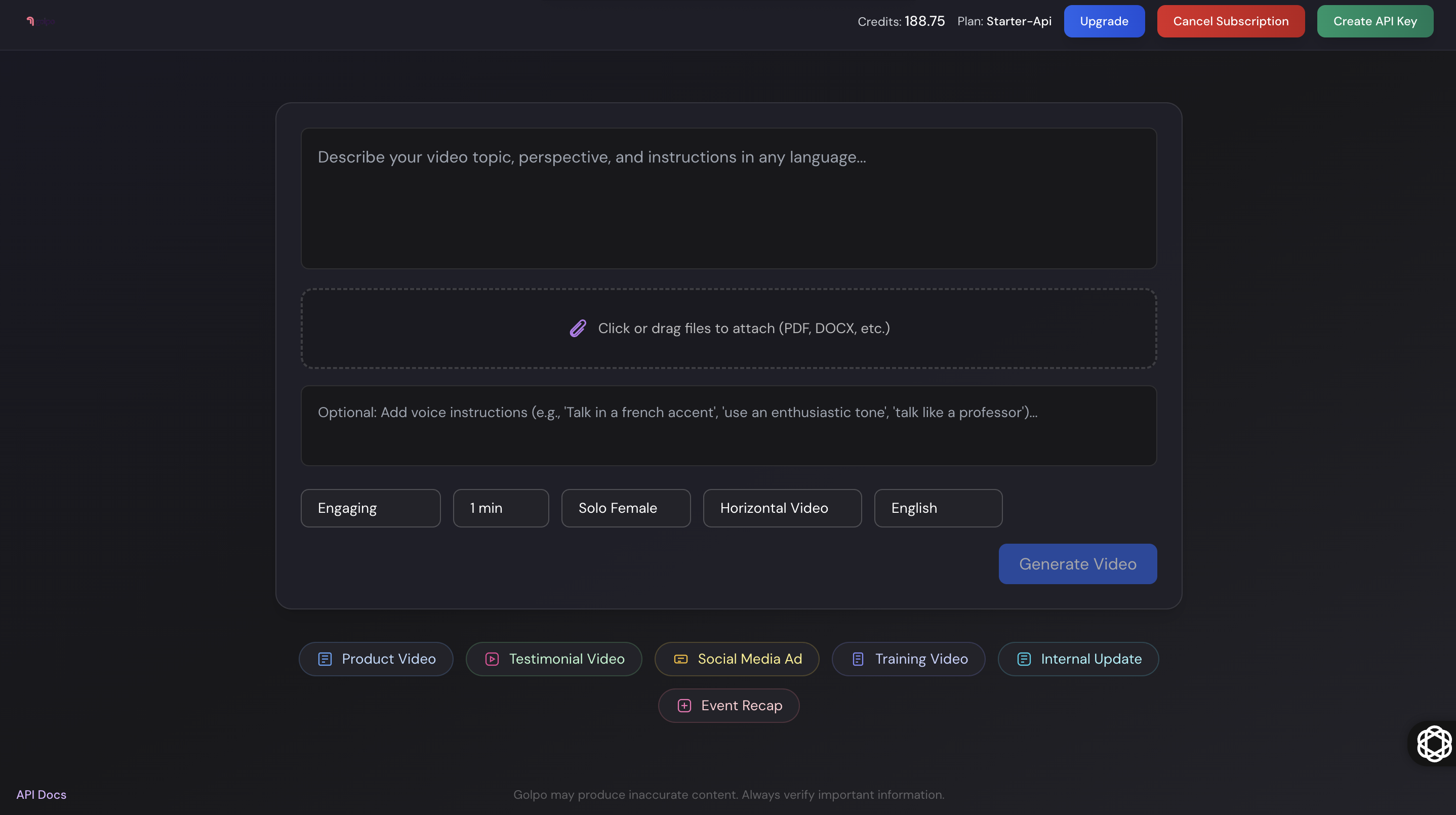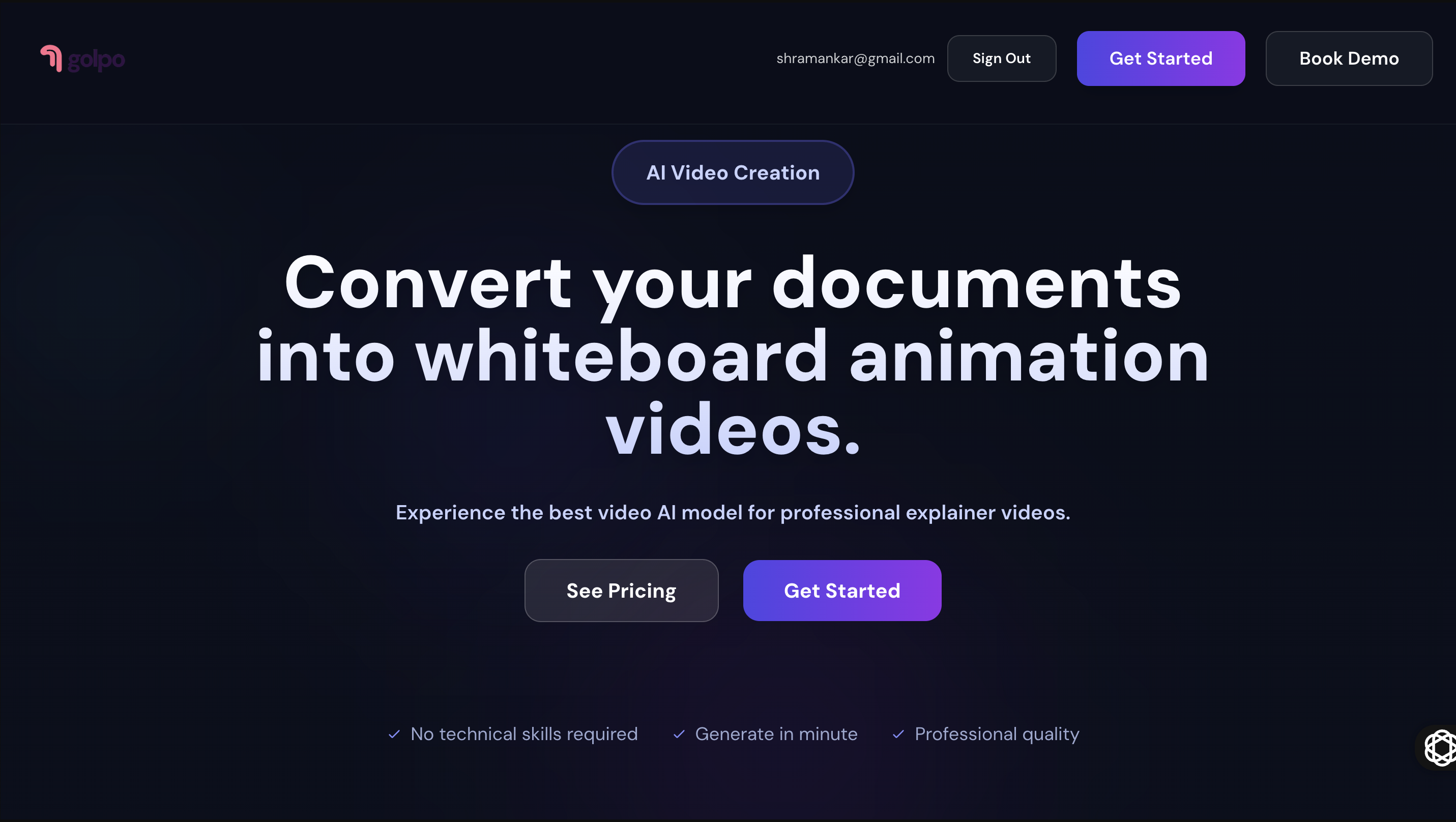Golpo is the most powerful AI video generator for explainer videos. Through its custom-trained video gen engine, Golpo turns your documents and internal workflows into fully produced, customizable explainer videos. Try at https://video.golpoai.com/