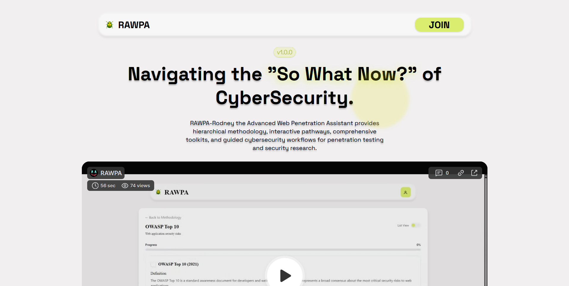 RAWPA is an AI-powered copilot for penetration testers and security researchers. It helps you overcome the "So what now?"roadblock by providing intelligent methodologies, an automated orchestrator, and a Kanban-style workspace to organize your entire workflow.