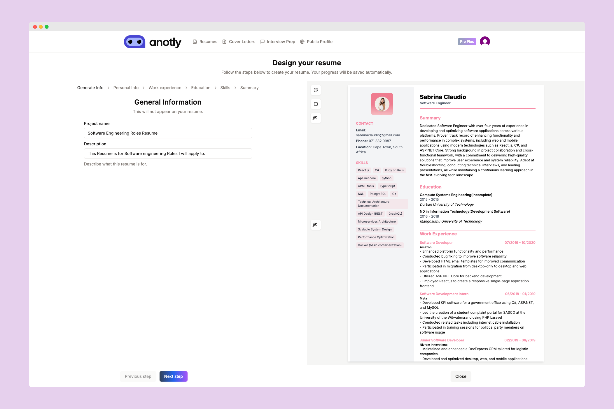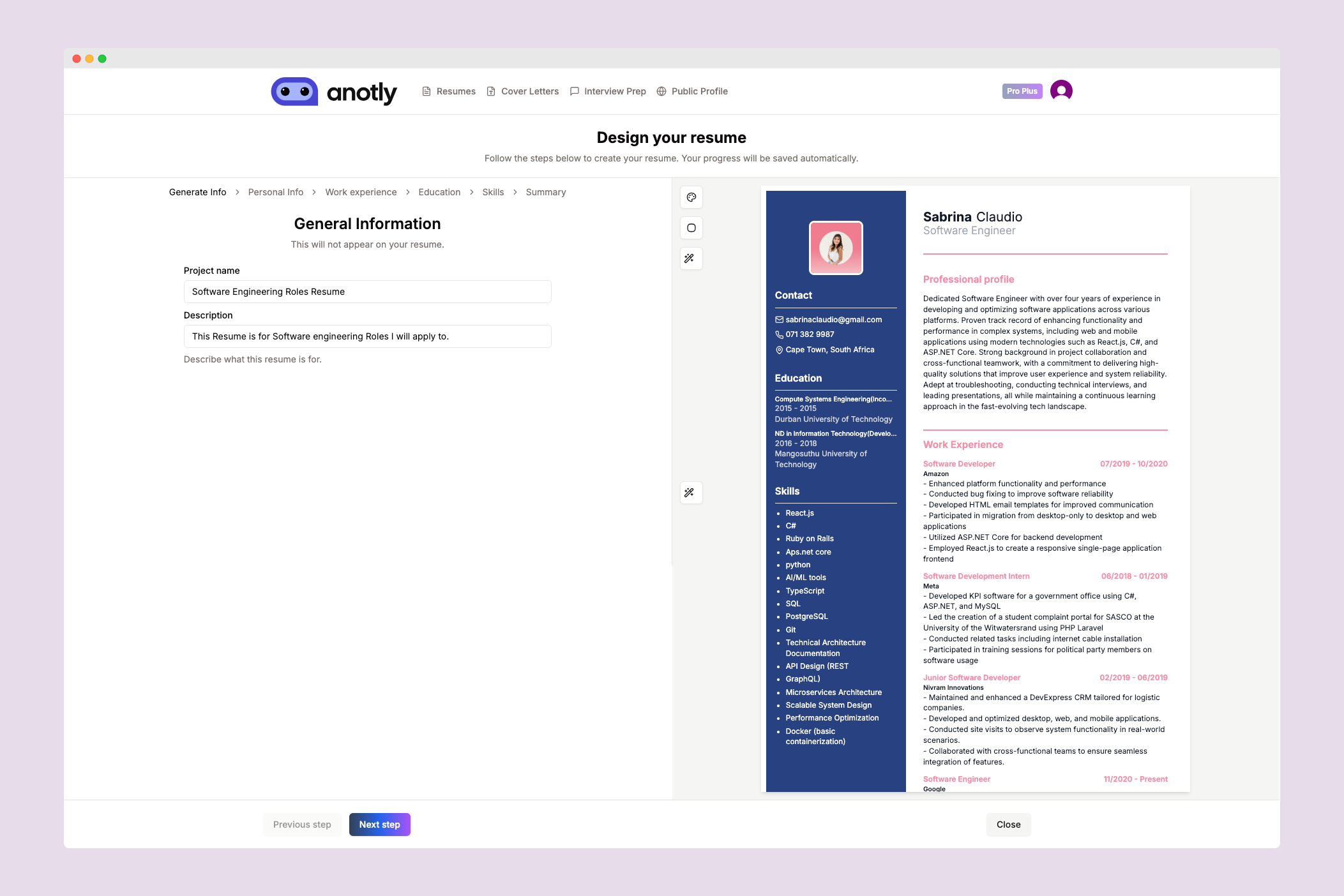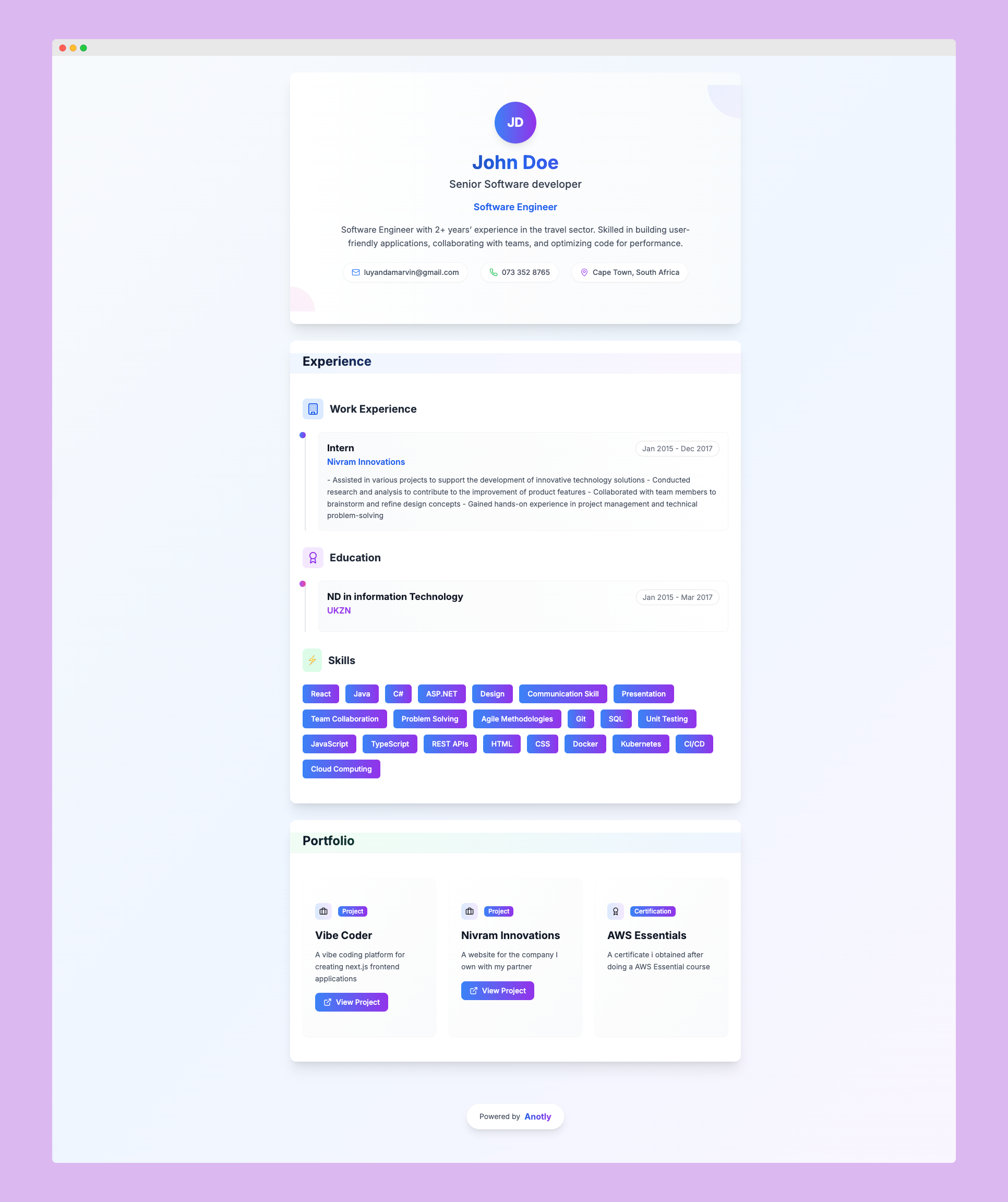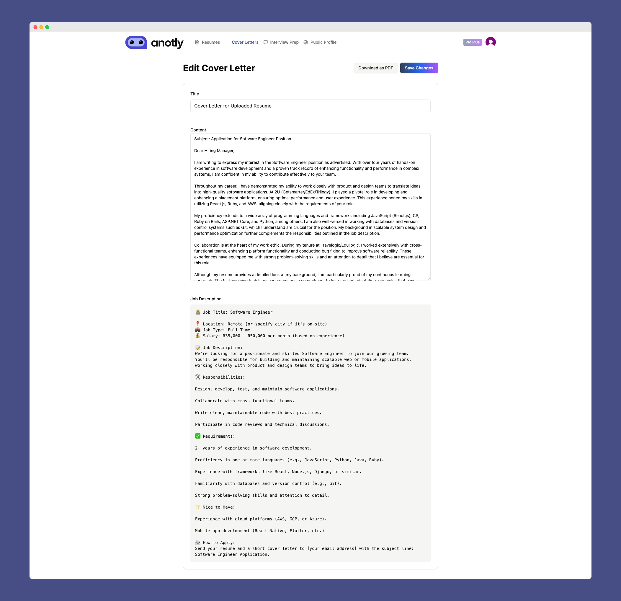 Anotly is your AI career assistant for resumes, cover letters, and mock interviews with real-time feedback. Simple, transparent pricing — no subscriptions. Plus, publish a professional public profile with no coding or hosting required.