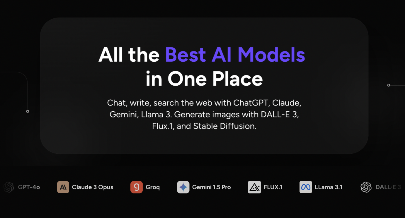 用一体化AI订阅省钱。聊天、编程、模型对比、网络搜索和图像生成,一站畅享顶尖大语言模型。