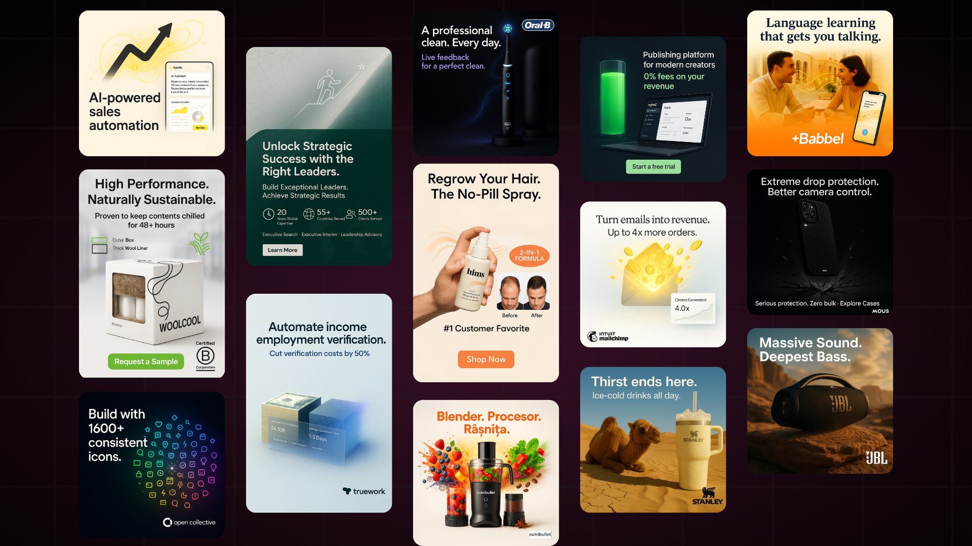 几分钟内,从单一链接到惊艳创意轻松实现。一站式完成广告的创建、编辑、调整尺寸、发布与测试。
