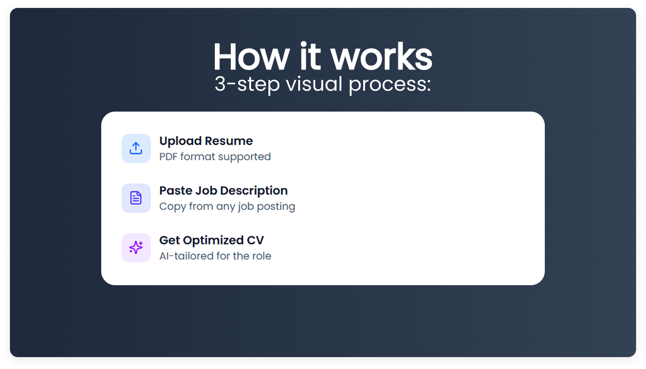 FitCV运用人工智能,根据招聘信息智能分析您的简历。为您提供简历各版块(包括个人概述、工作经验、教育背景和技能)的匹配度评分与定制化改进建议。精准掌握优化方向,明确提升路径。