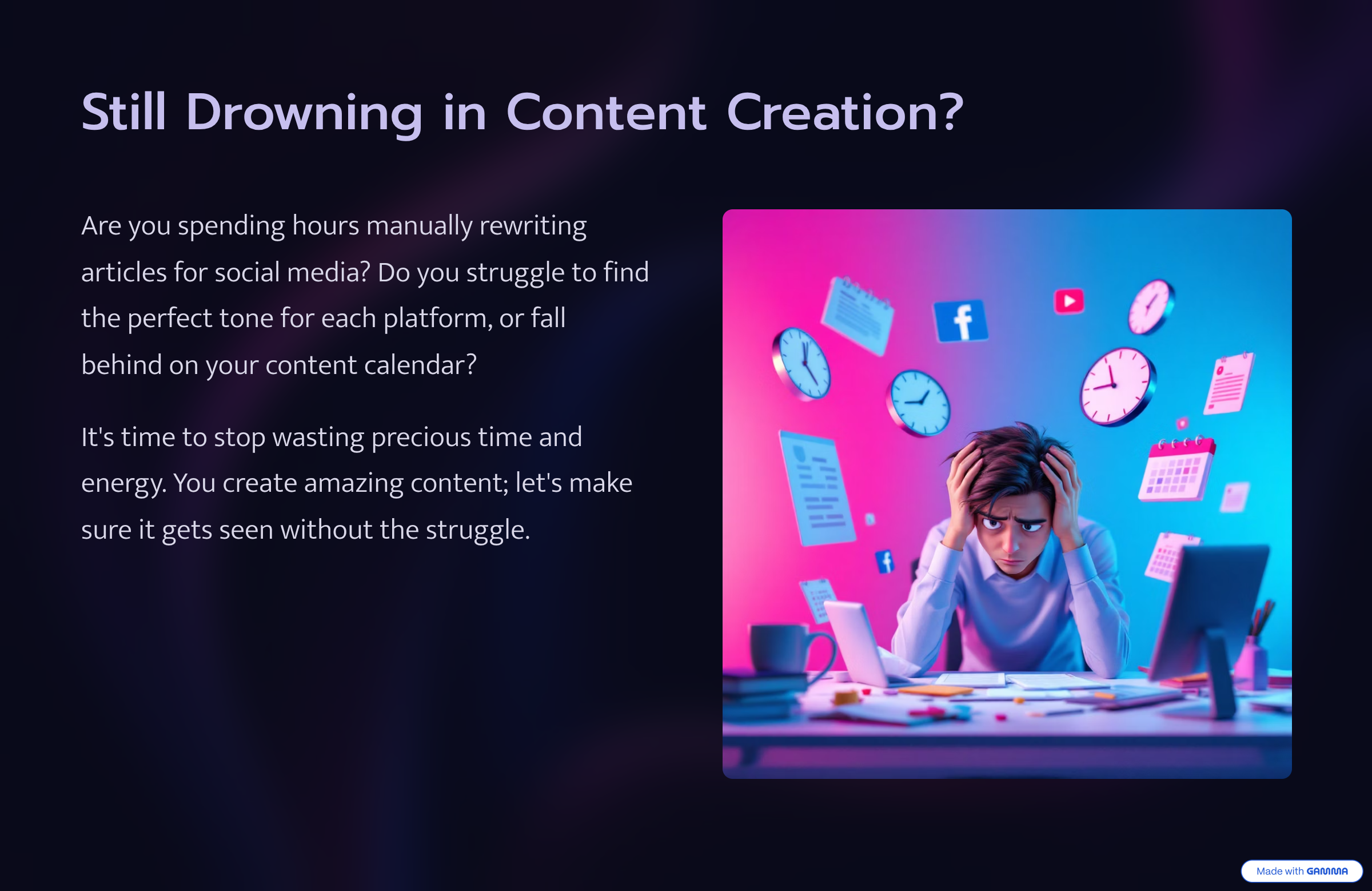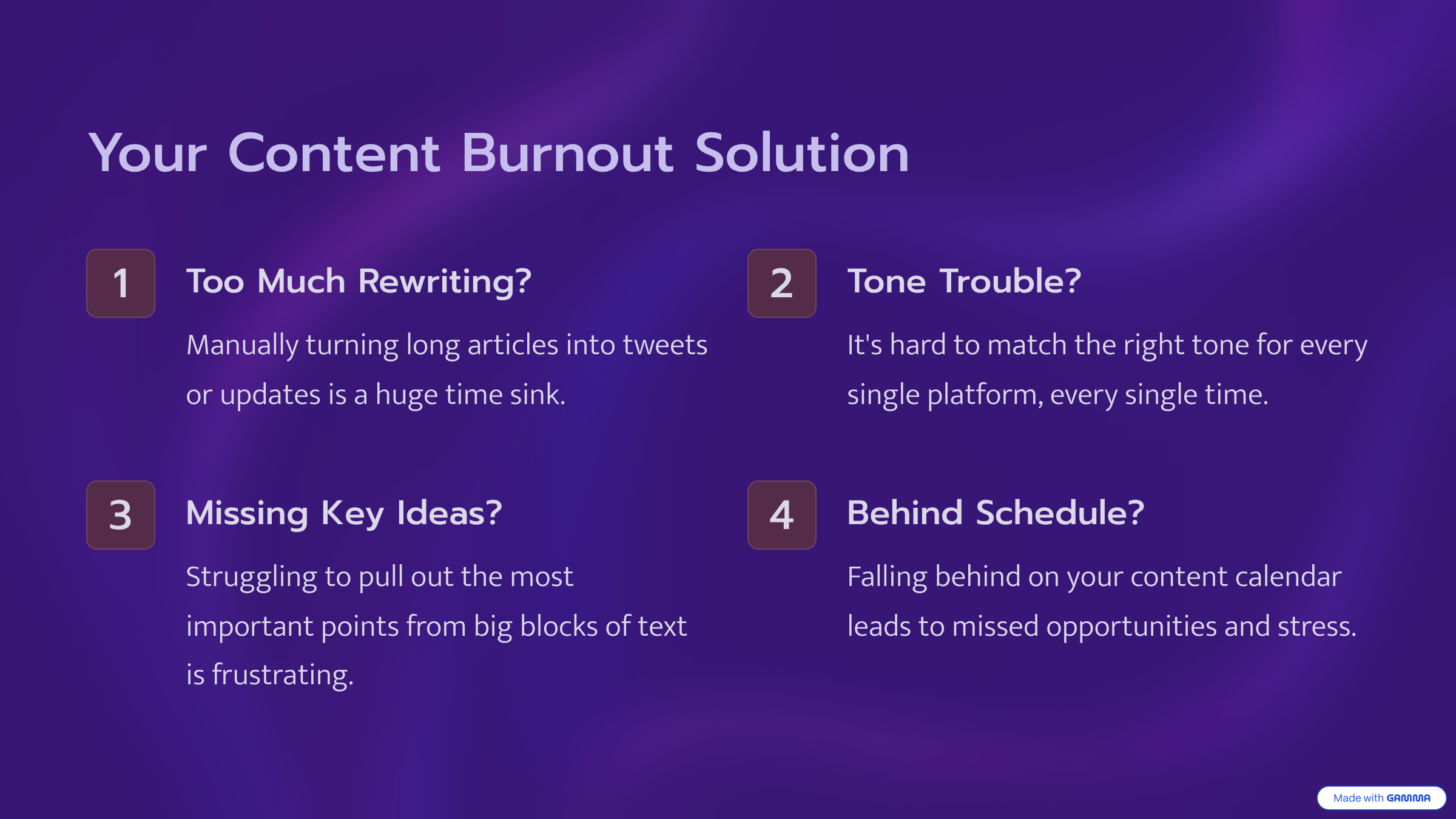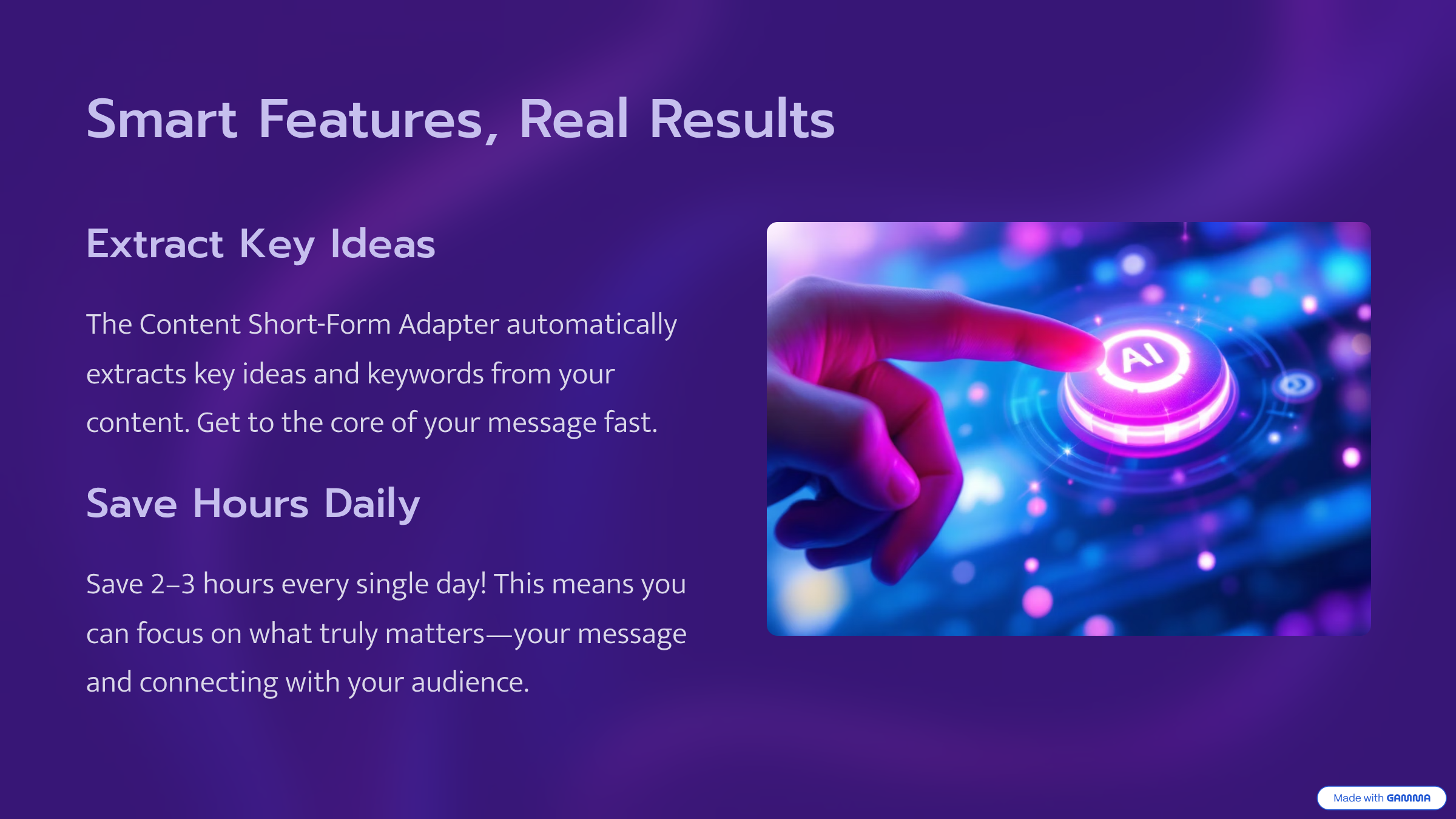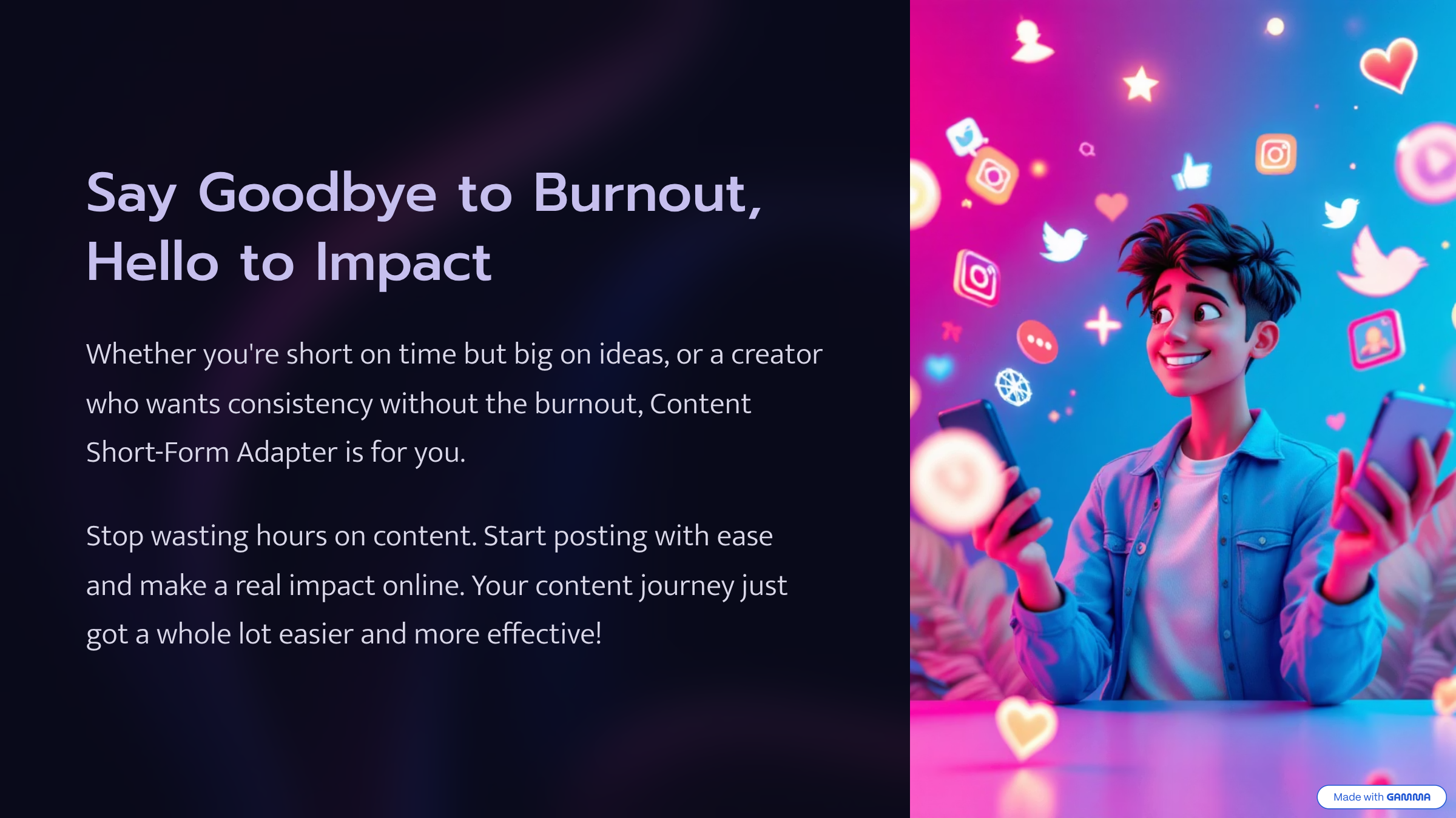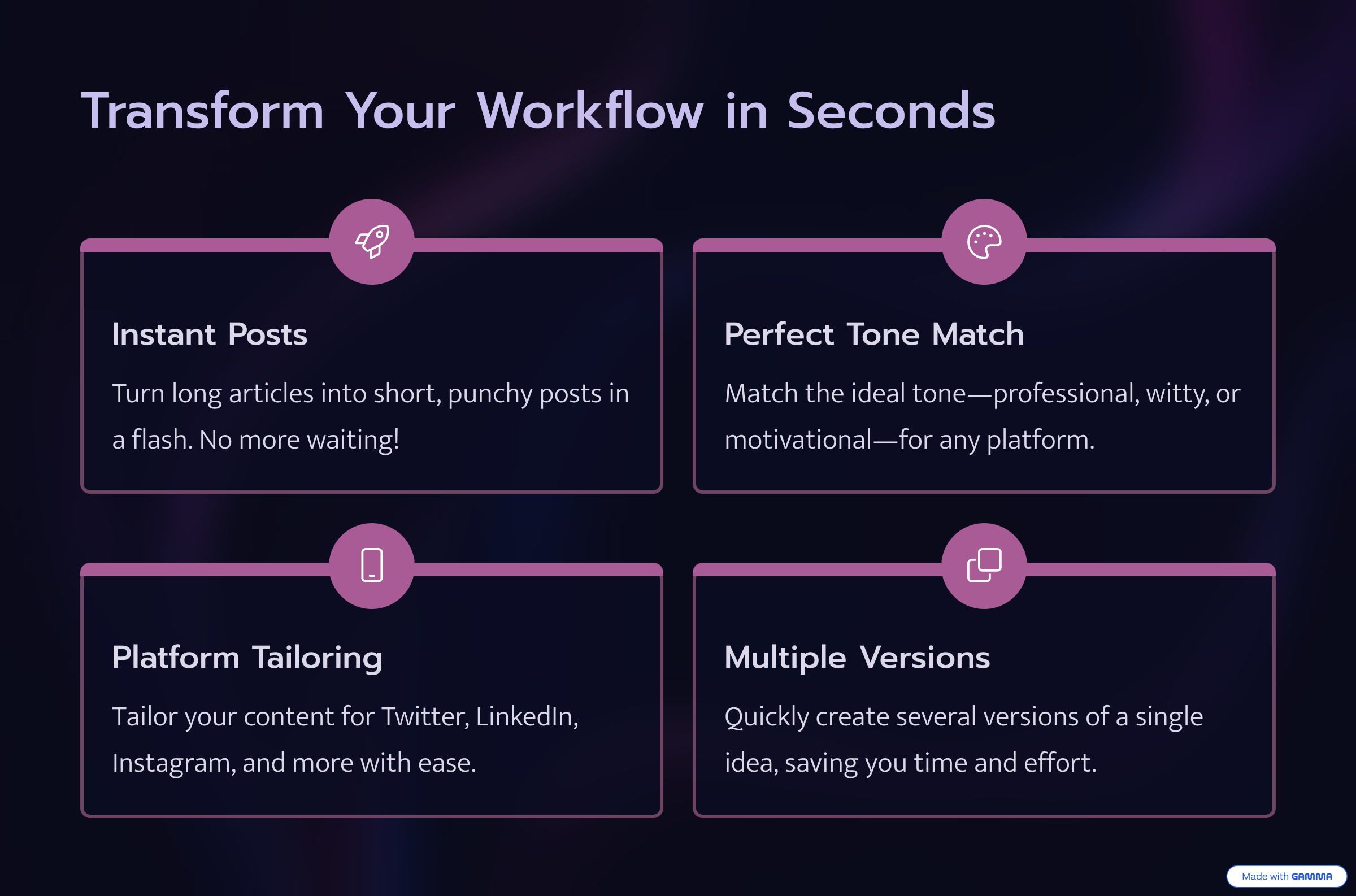 将冗长内容转化为简短有力的帖子——只需几秒钟。