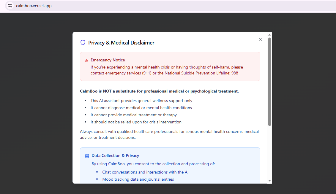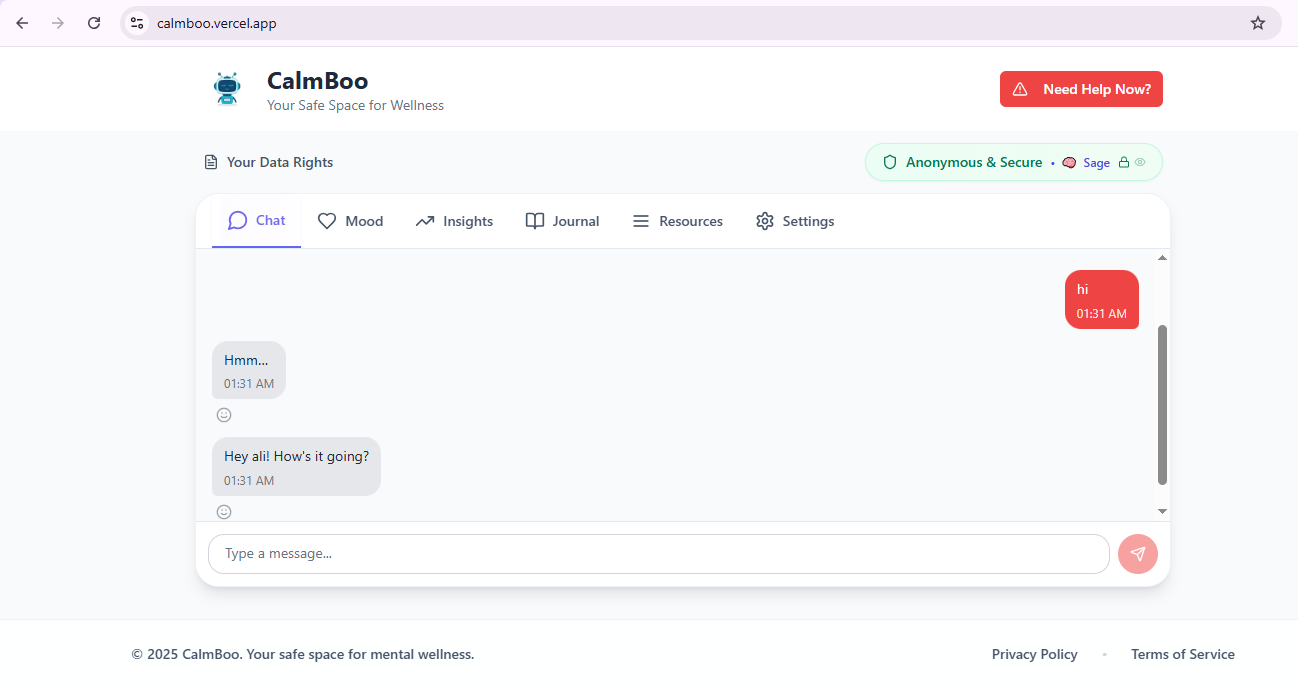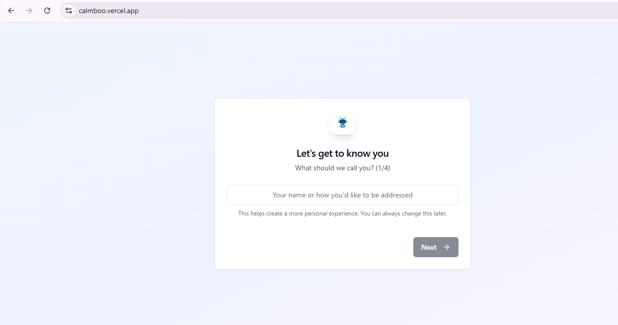 Calmboo is your safe, judgment-free AI companion for when you’re feeling stressed, anxious, or just need someone to talk to. No sign-up. No data collection. No personal questions. You open the site → you start talking → you feel better. That’sit.