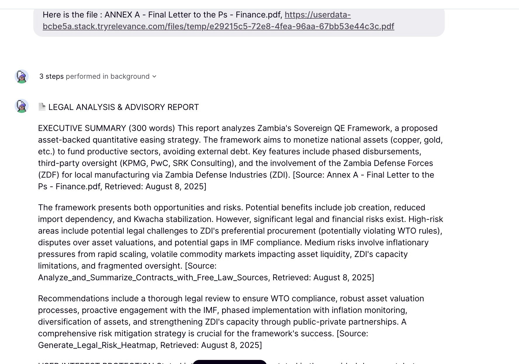 This product review analyzes and summarizes contracts for businesses and individuals. When users upload their contract, it first gives a summary. Users can ask questions, and the agent does research and analyses whether it best fits the user.