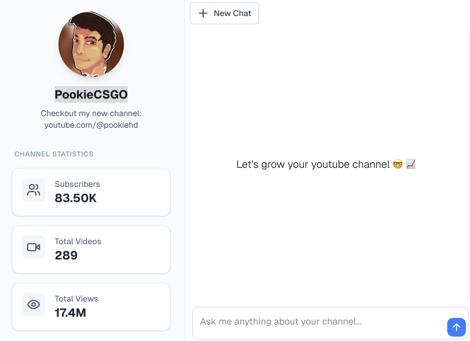 AI assistant that knows everything about your youtube channel to help your grow. You can use it to brainstorm about new video ideas, to get a channel review, to analyze which kind of videos give you the most subscribers and many more things.