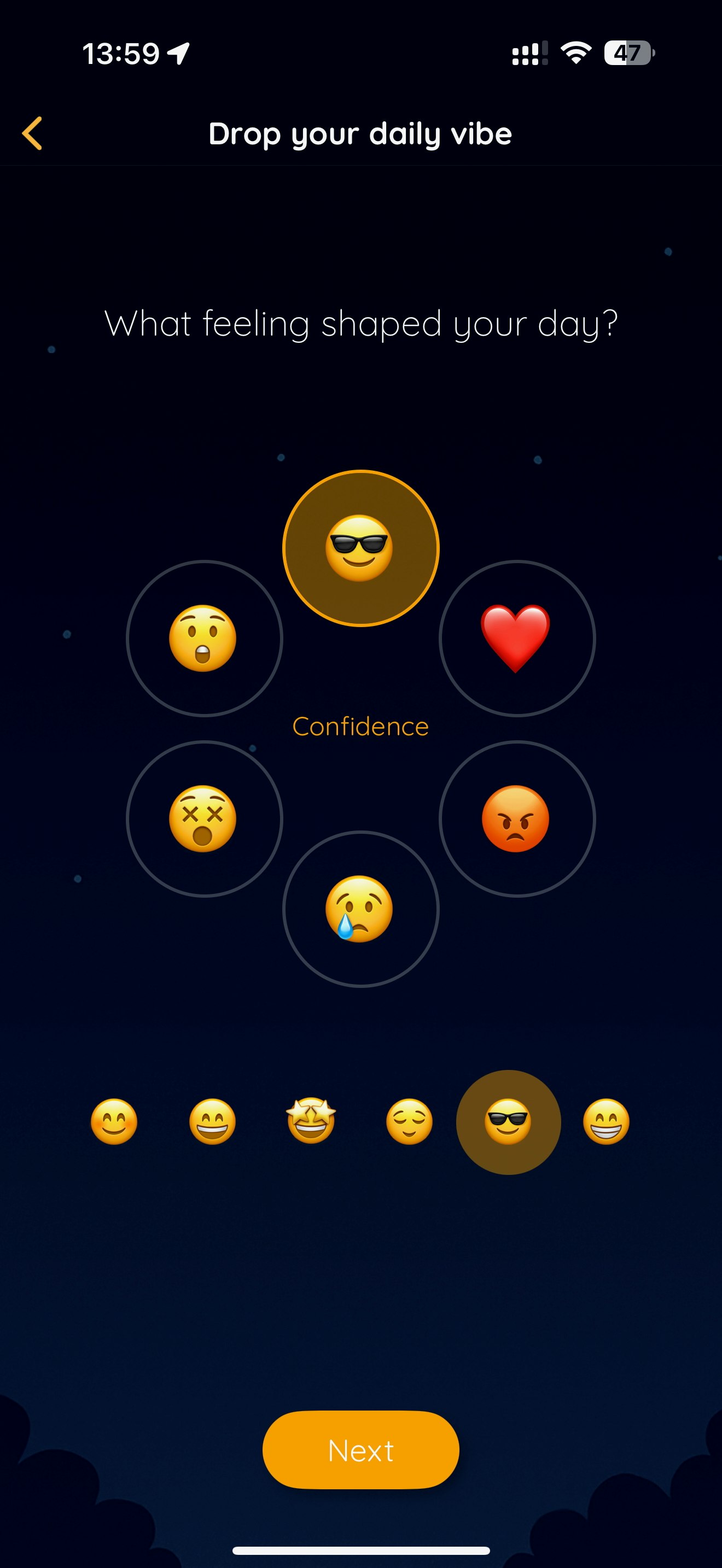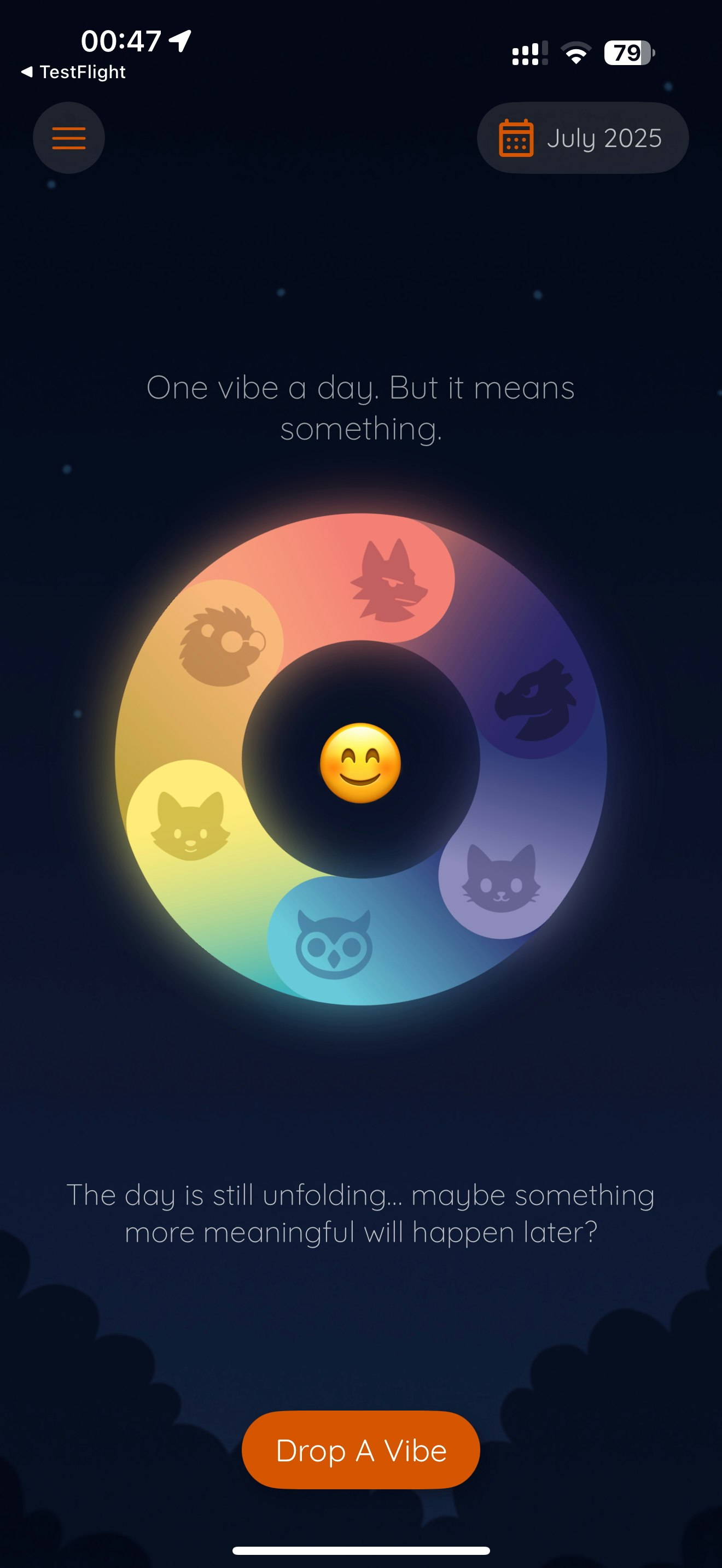 VibeLoop is an emotional journaling app. Each day, log one meaningful moment using emoji and a short note, then receive poetic reflections from your mystical AI companions. A daily ritual of presence, expression, and ambient emotional magic.