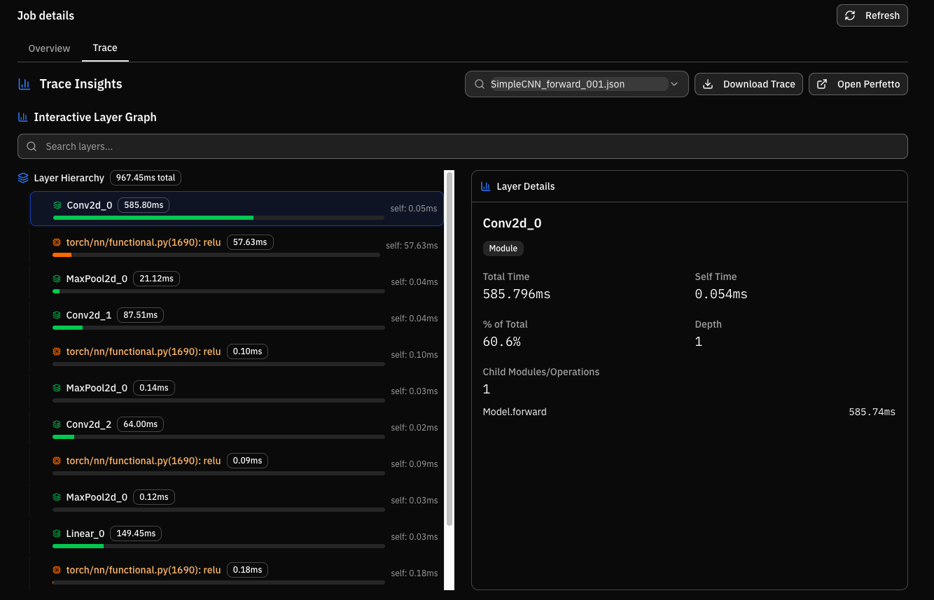 See exactly why your PyTorch model is slow - Python to CUDA in one view. Current tools show fragments; we connect torch profiler, nsys & ncu automatically. One decorator reveals 'layer 4 attention slow due to memory-bound GEMM.' No profiling PhD required.
