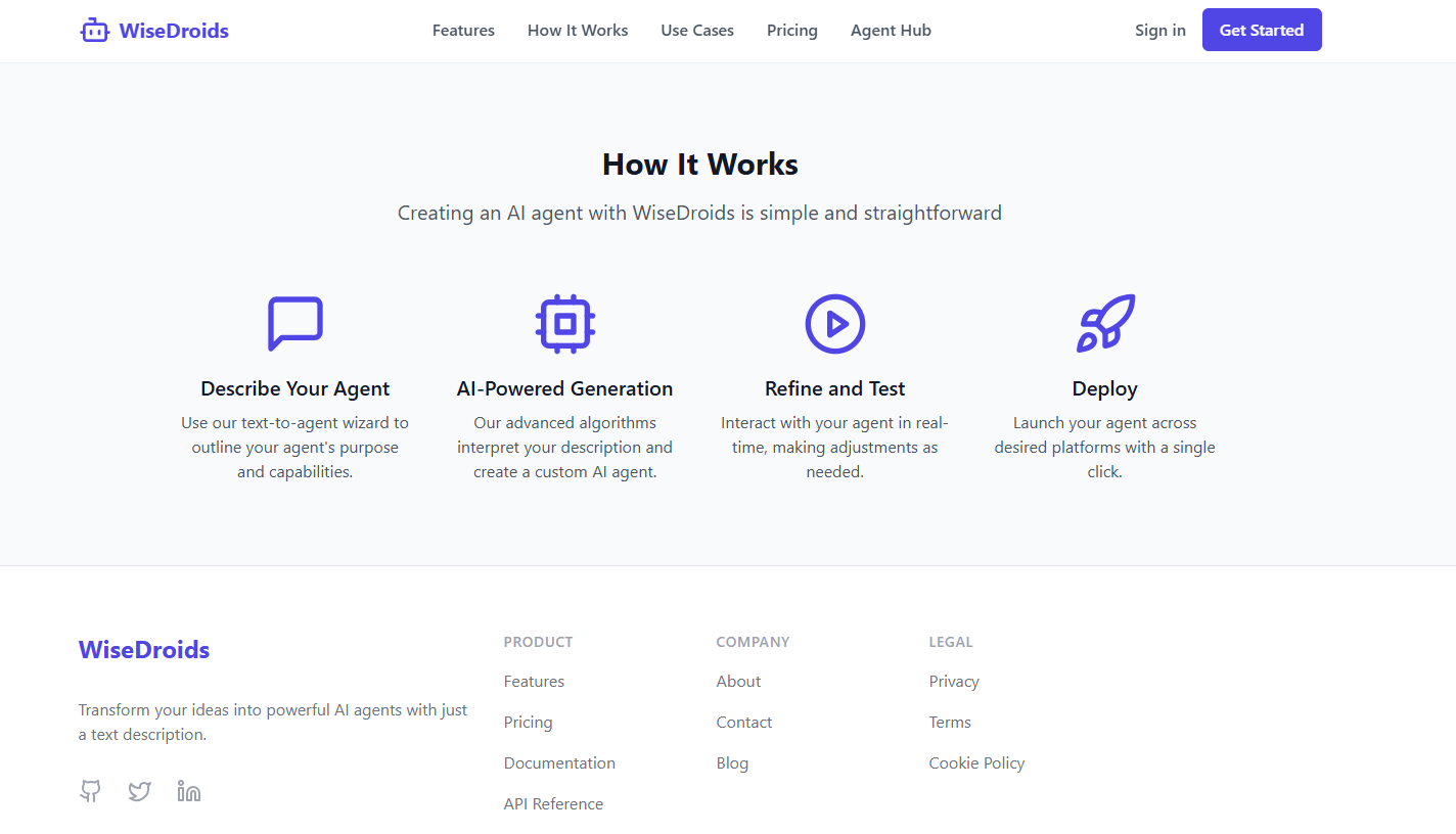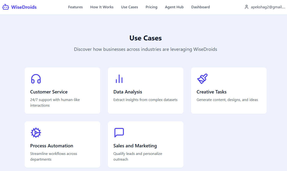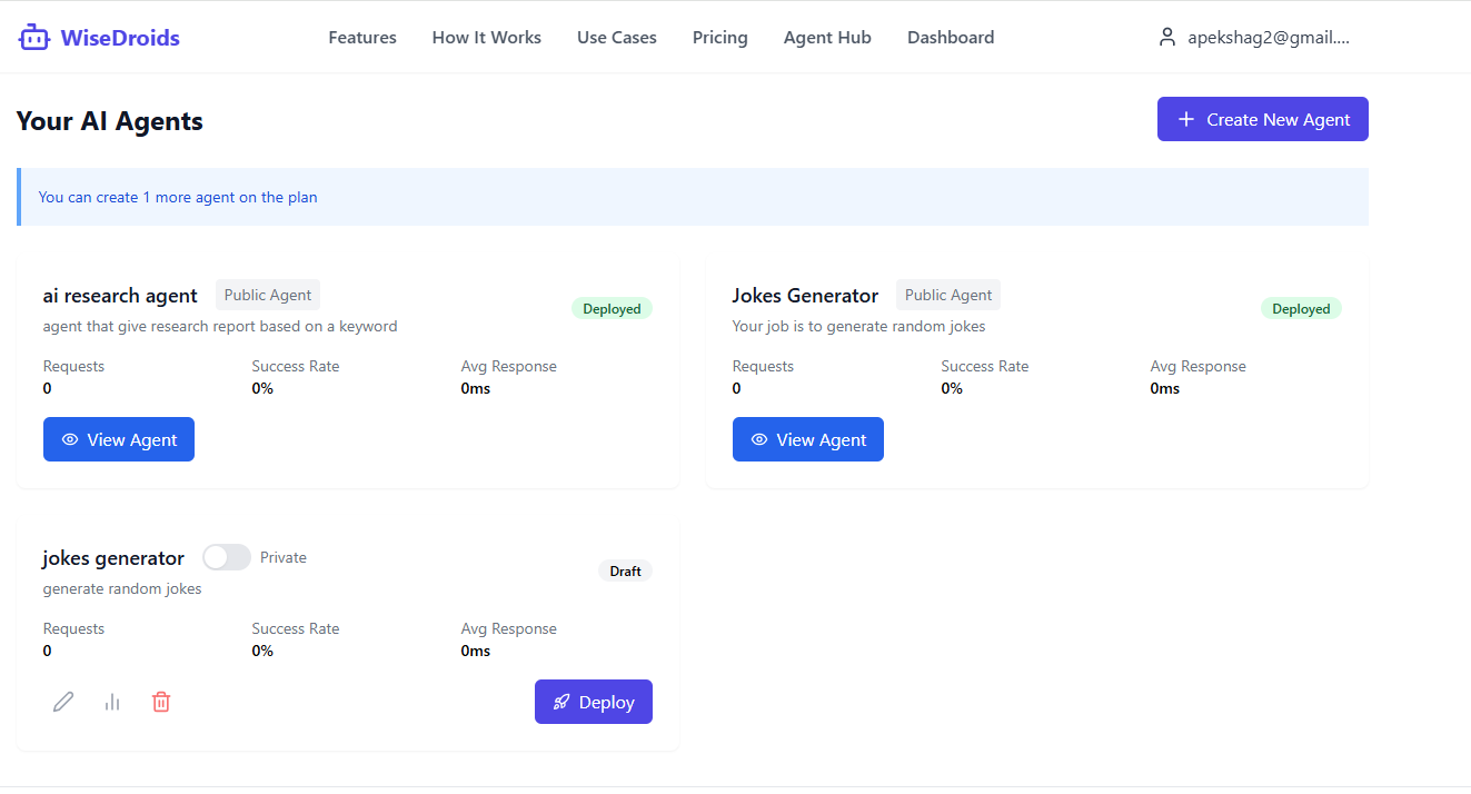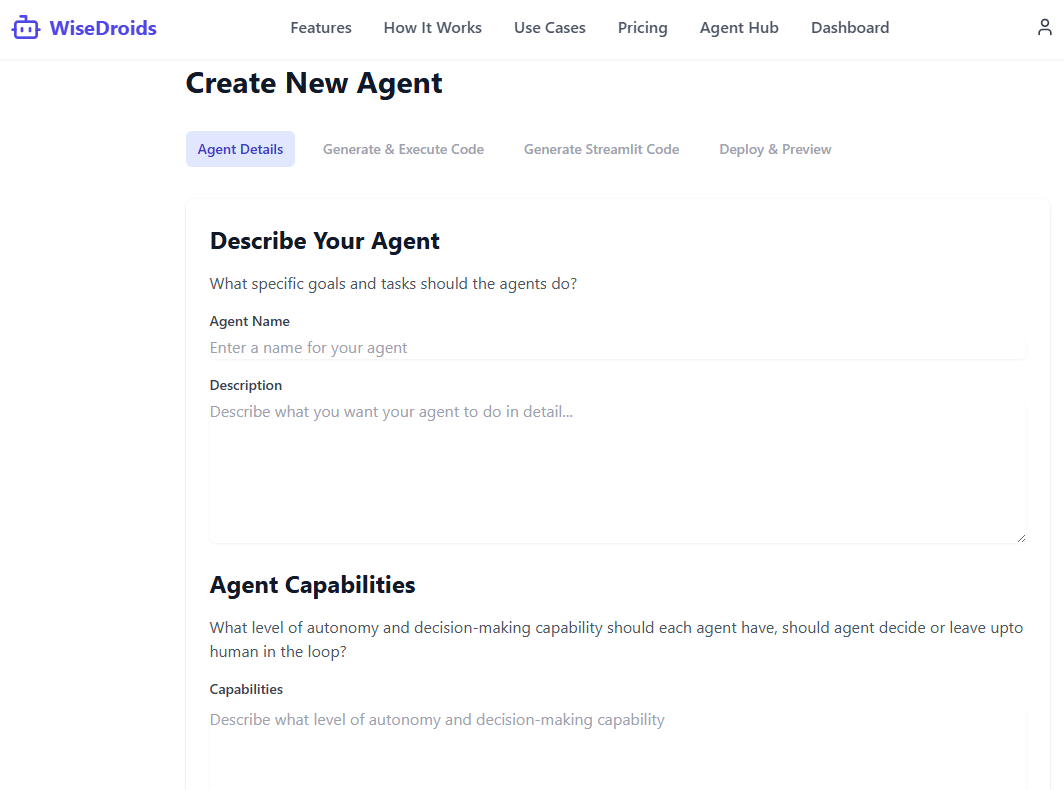 WiseDroids lets you create, deploy & share AI agents from plain text—no code needed. Choose from ready-made agents or build your own for content, recruiting, career growth & more. Integrated tools, guardrails & analytics included.