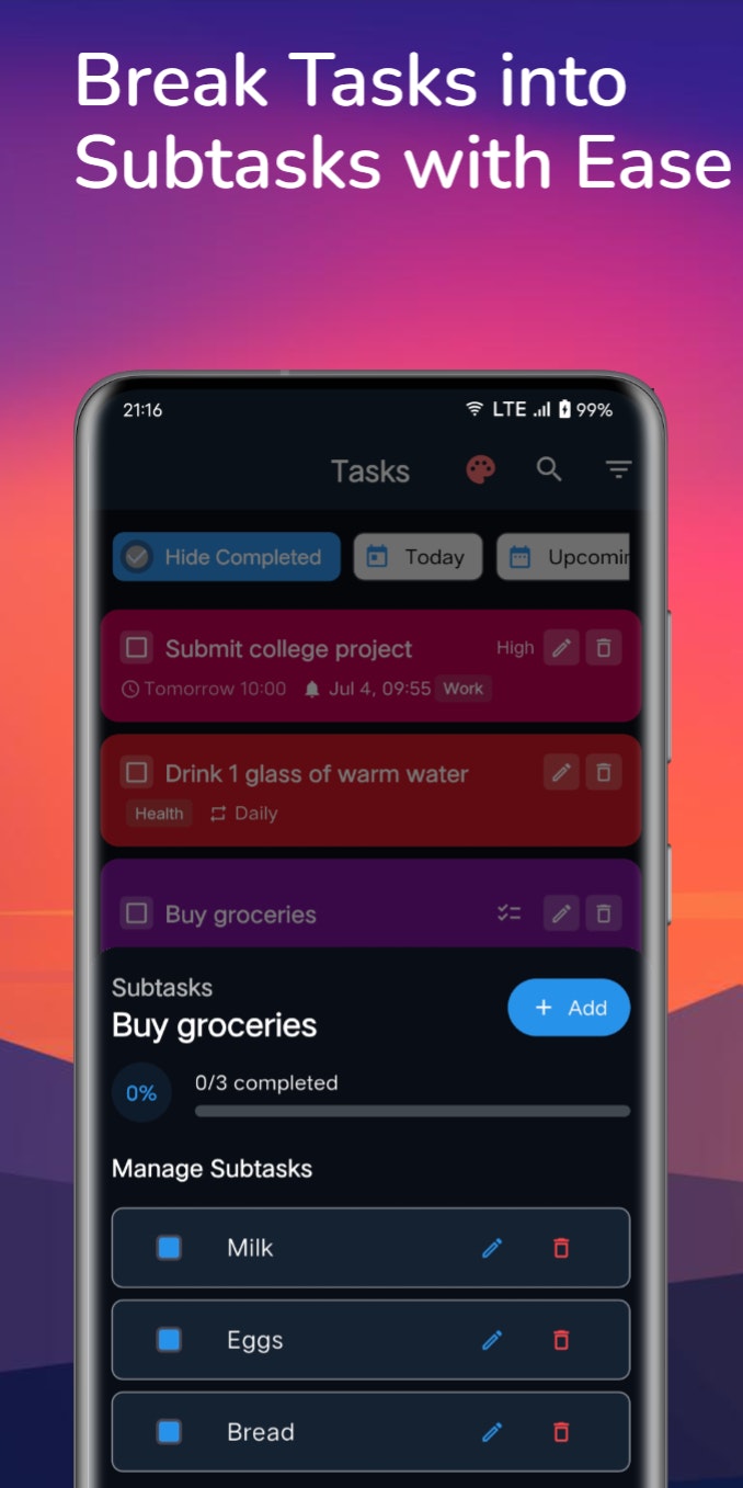 TaskMate is an AI-powered task manager that helps you stay organized and productive. Featuring Focus Mode, voice-to-task, multi-language support, and cloud sync, it’s designed to simplify your daily planning and boost efficiency across devices.