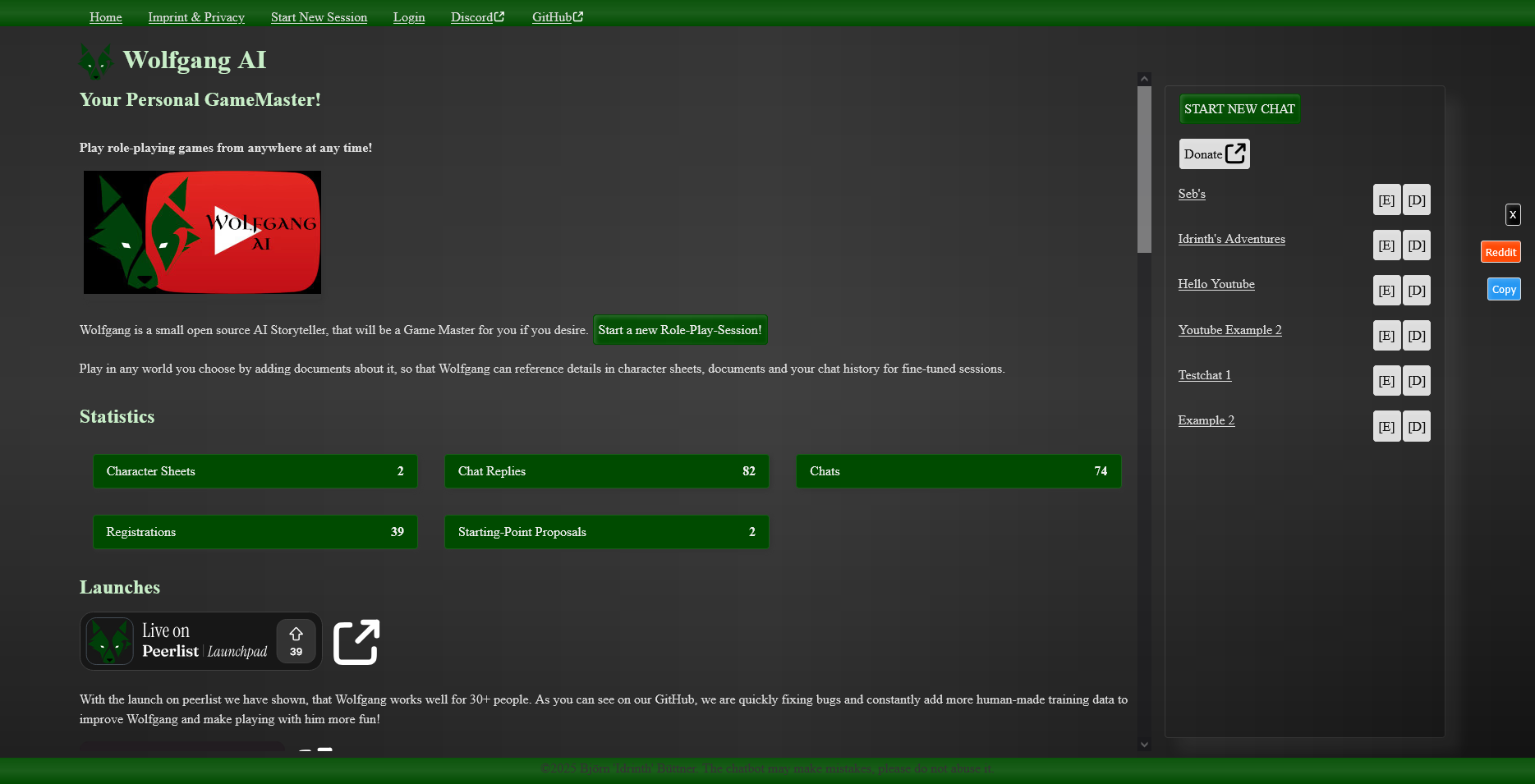 Wolfgang AI - Your personal game master for solo RPG adventures. Open-source, privacy-focused, with near unlimited context for epic storytelling sessions. Use either on the website or locally on your machine or server!