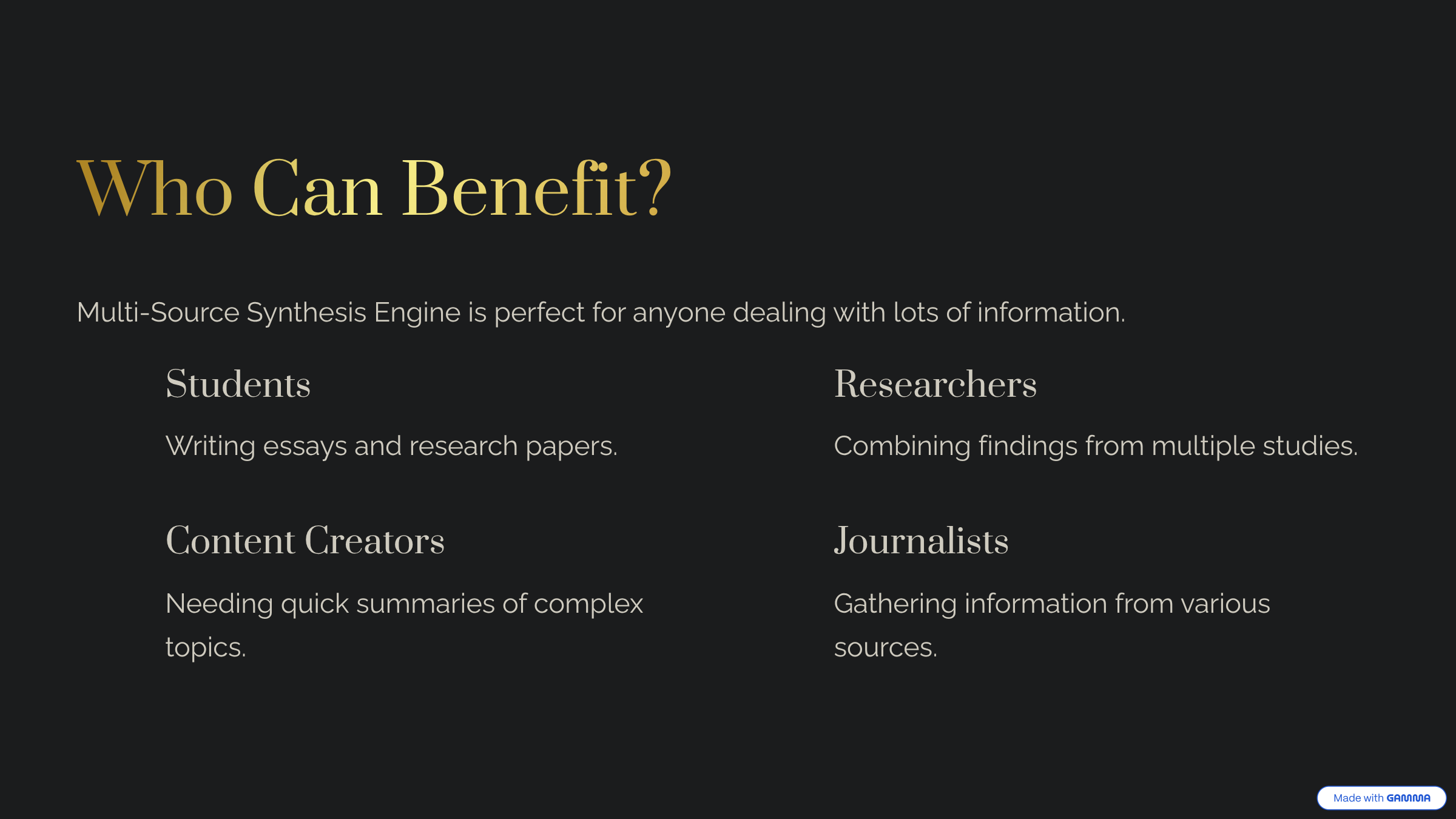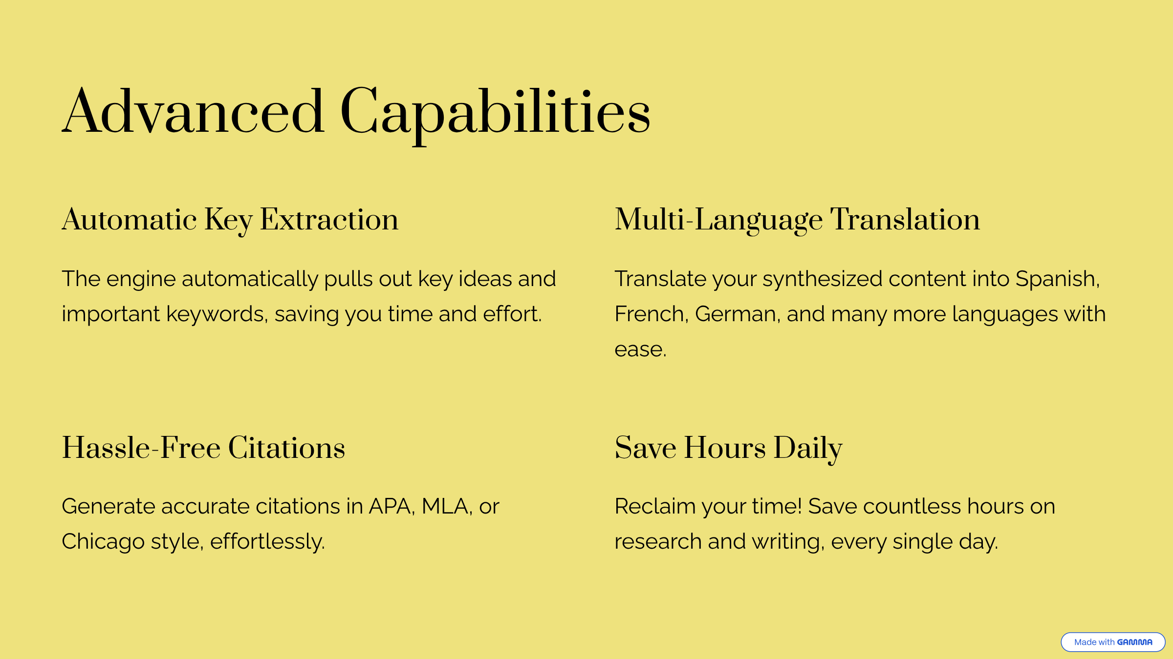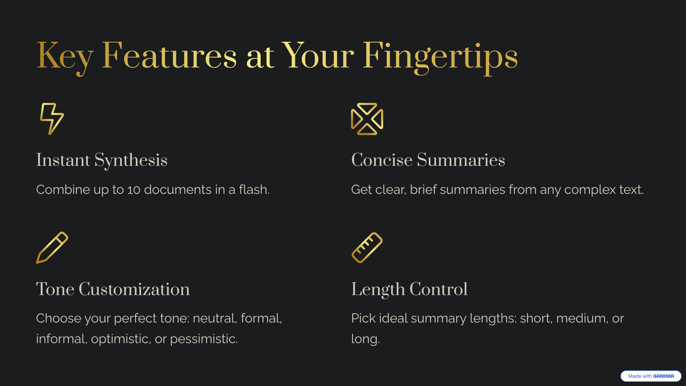 多源合成引擎基于Gemini 2.5 Pro运行,帮助研究人员、作家和学生即时整合并总结多来源内容。只需数秒,即可直接在浏览器中调整语气、长度、语言,并生成引用。