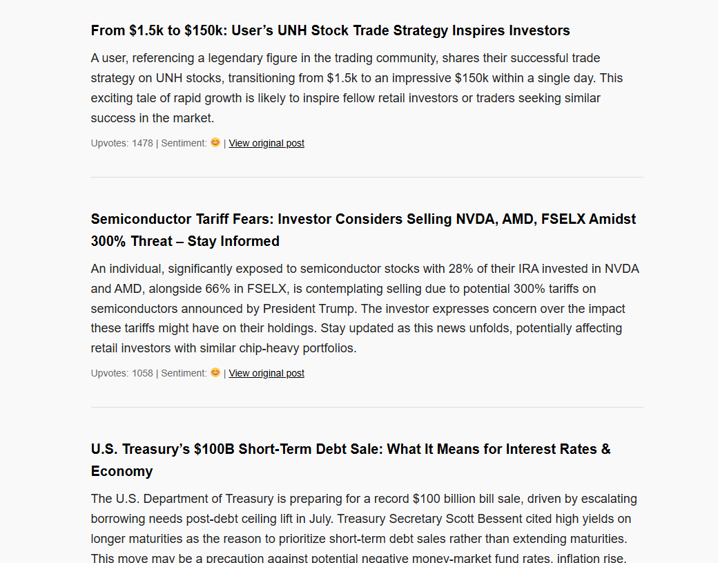 Substonks每日提供最热门股票子版块的精华摘要。无噪音,无表情包,只保留核心信息。通过情绪分析、简洁的新闻简报,以及在股市开盘前两小时发布的帖子,您既能节省宝贵时间,又能及时掌握市场动态。