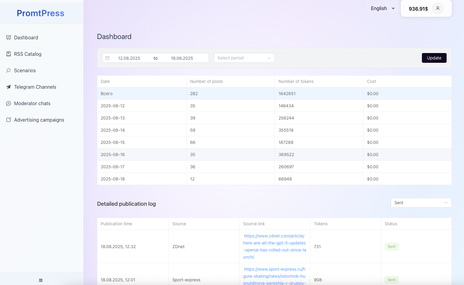 PromtPress 是一款端到端运营Telegram频道的AI SaaS平台:全天候自动实现内容导入、翻译、改写和发布。订阅即享内置流量支持,让您的频道不仅持续运营,更能实现增长。
